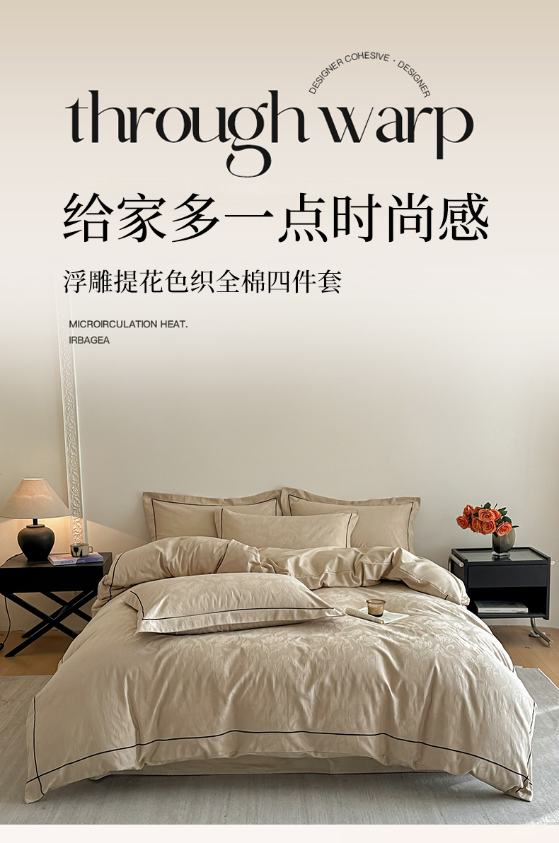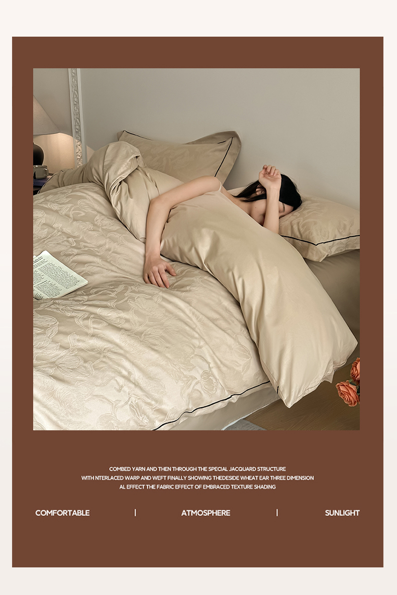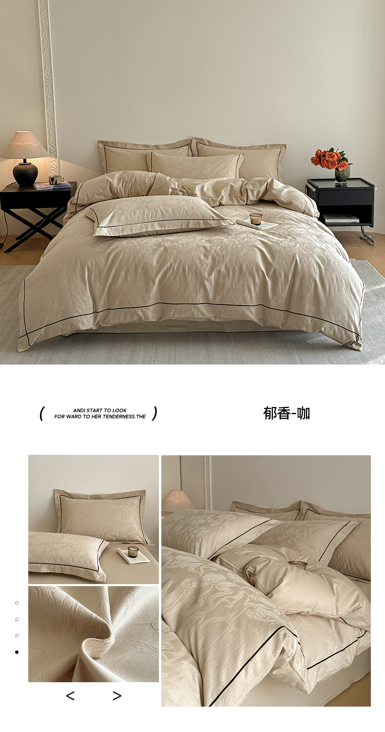 首尔家纺 2026新款浮雕提花色织全棉四件套 郁香-米咖