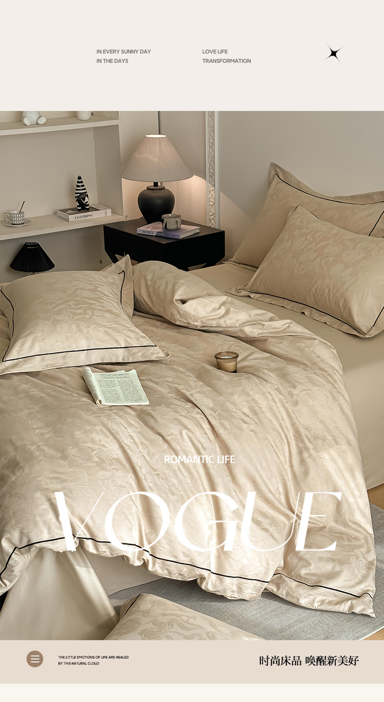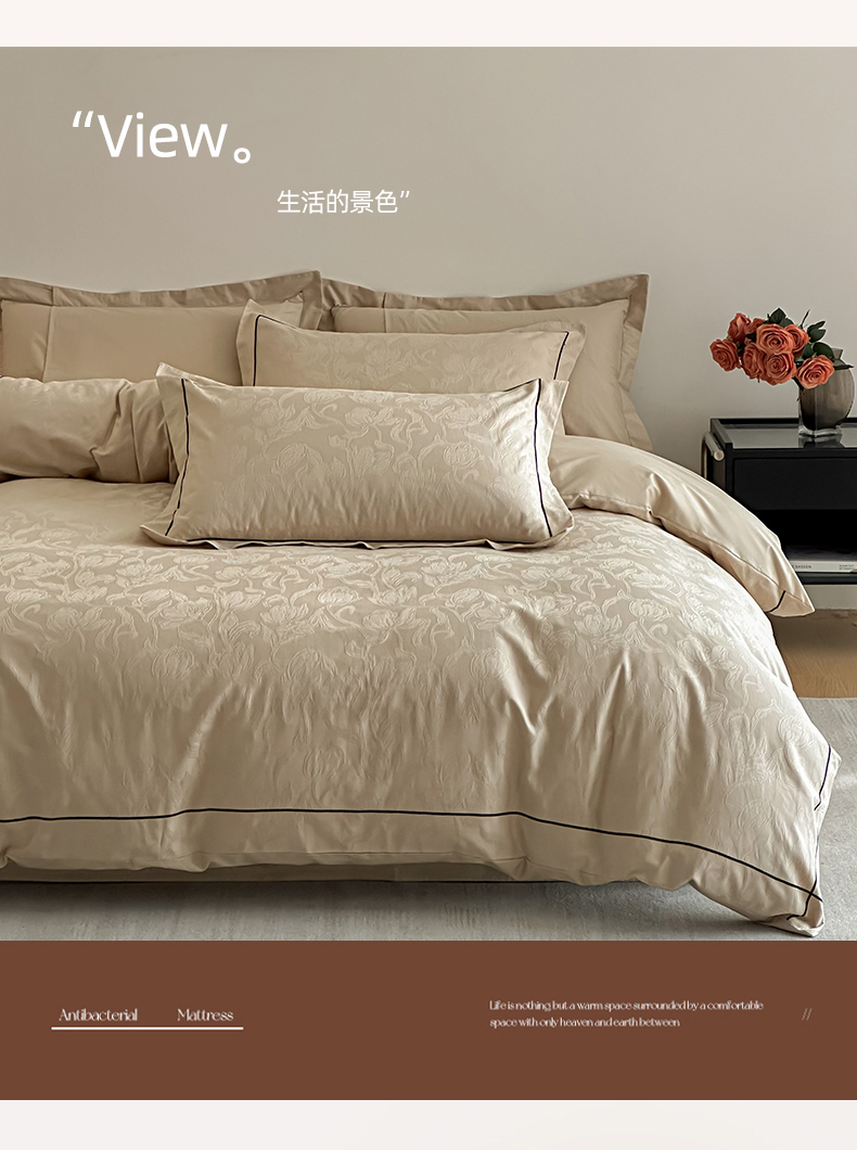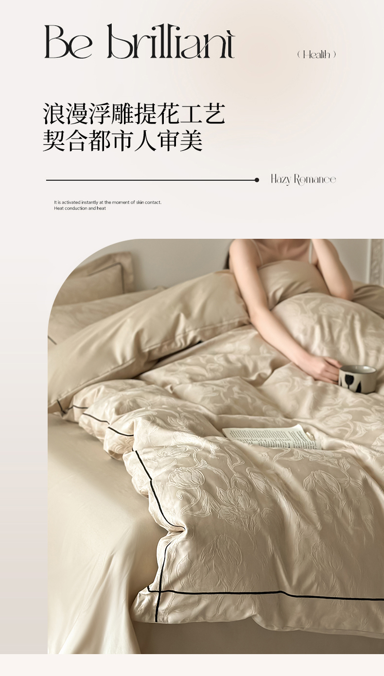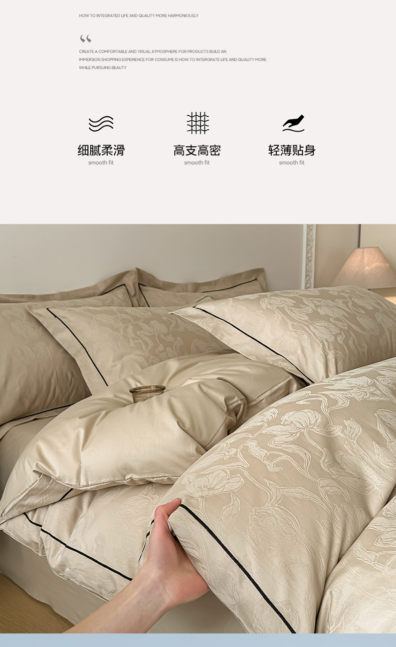 首尔家纺 2026新款浮雕提花色织全棉四件套 郁香-米咖