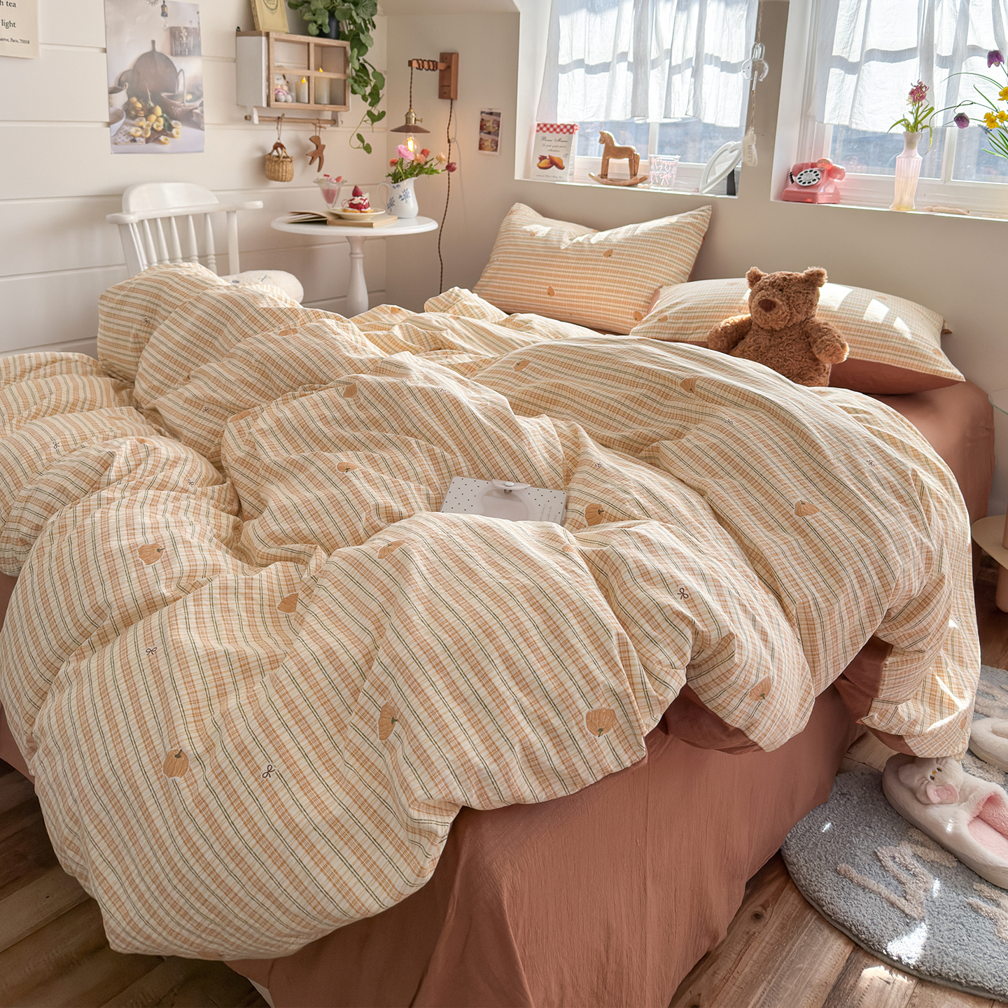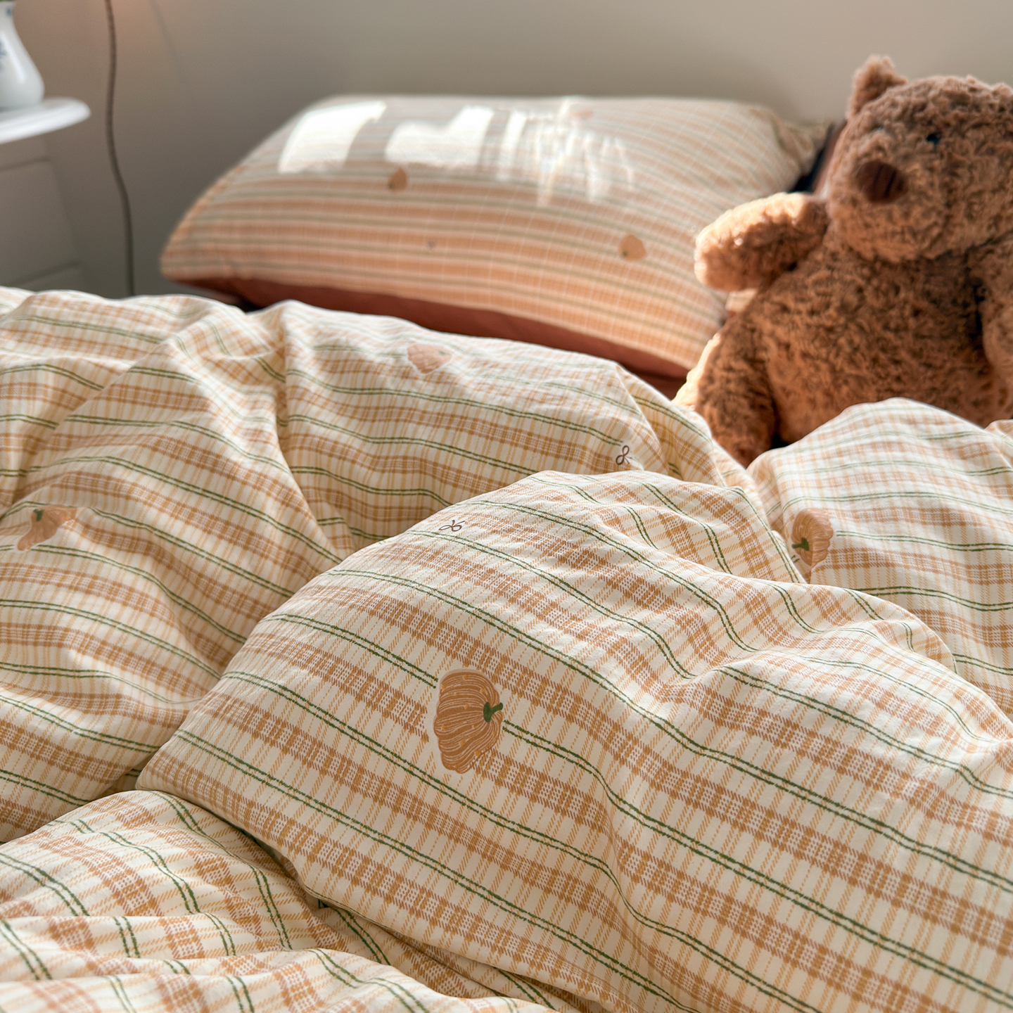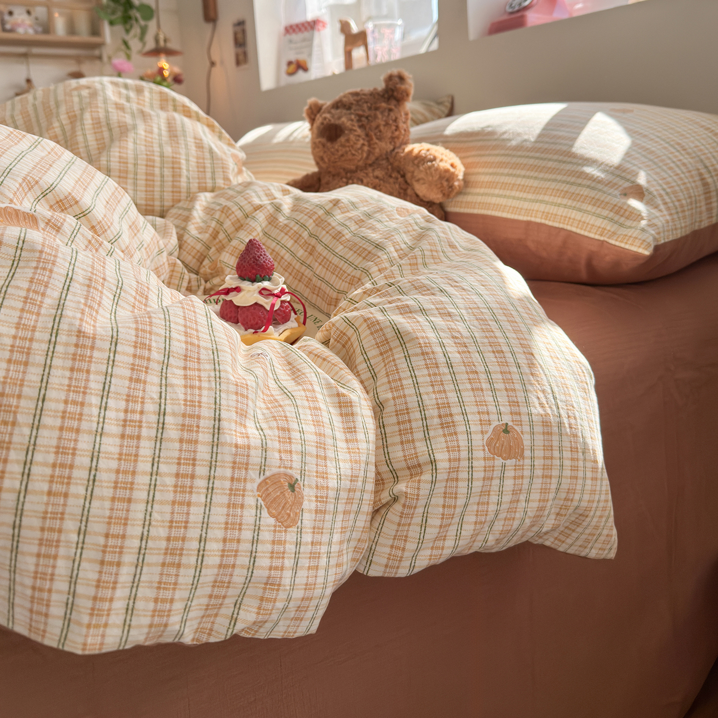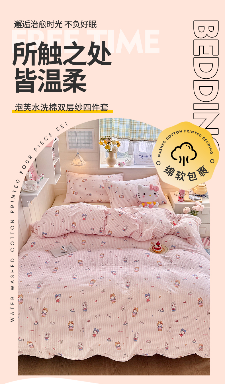 当前位置: 91家纺网 > 商品网购 > 床品套件 > 四件套 > 其它四件套 > 罗亿家纺 2026年新款泡芙水洗棉双层纱四件套 南瓜日记