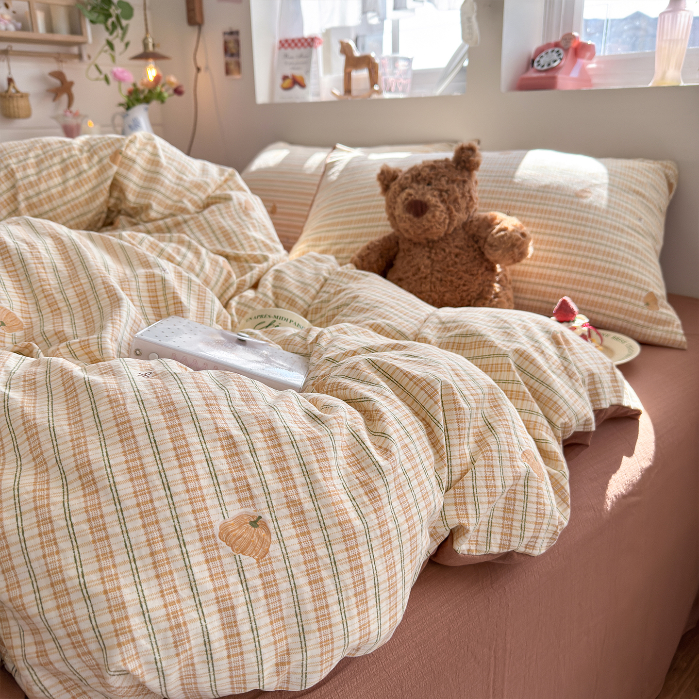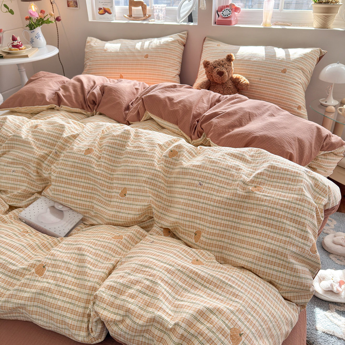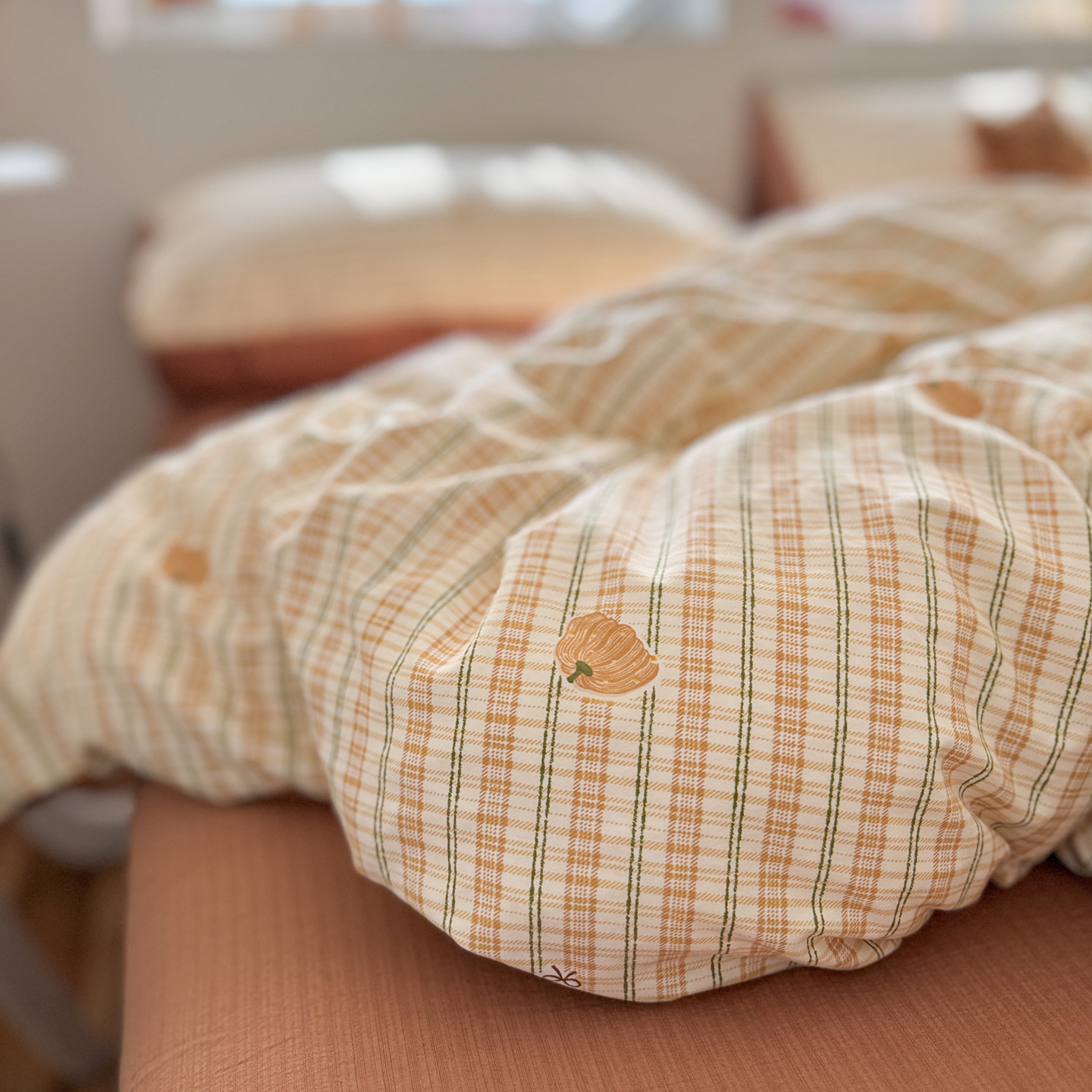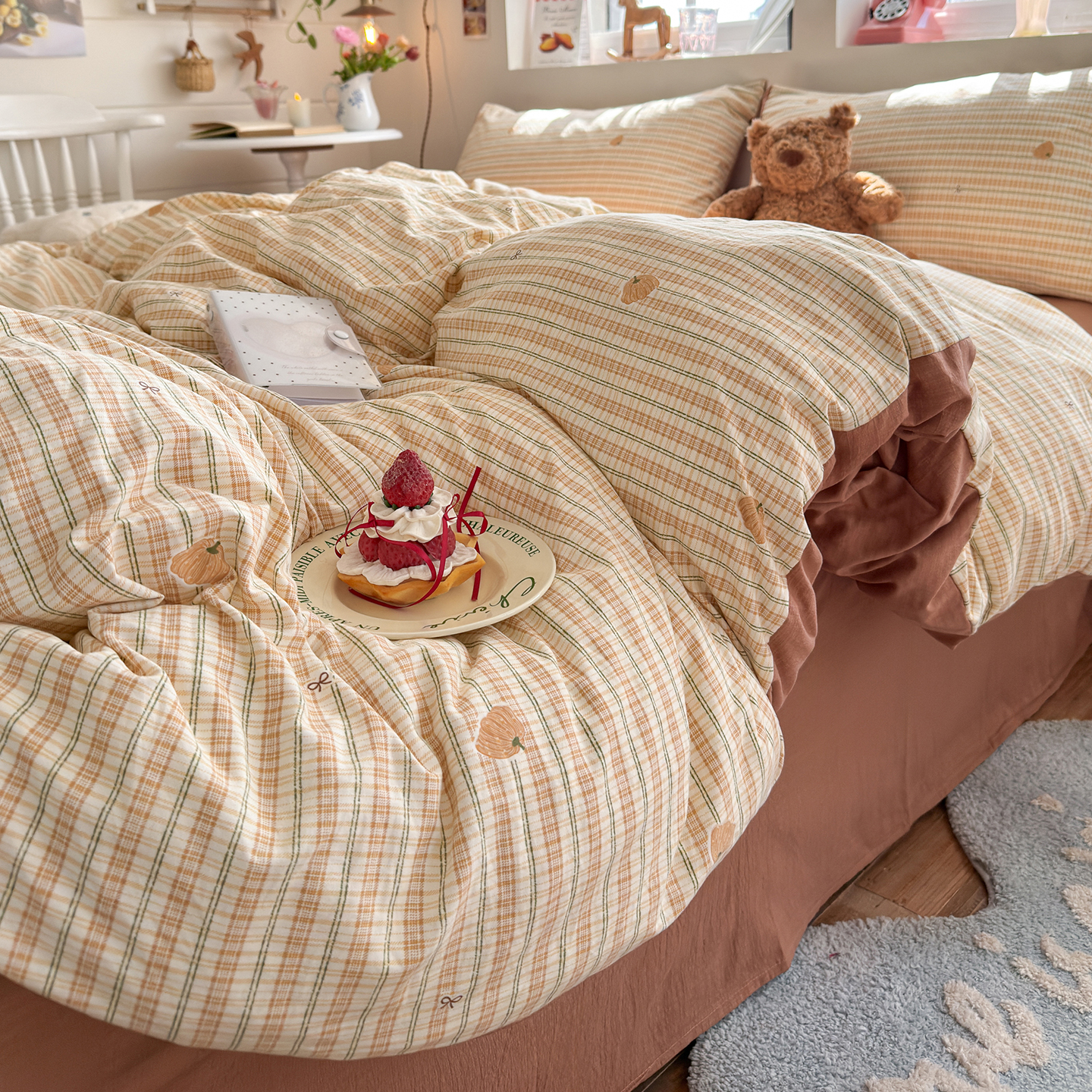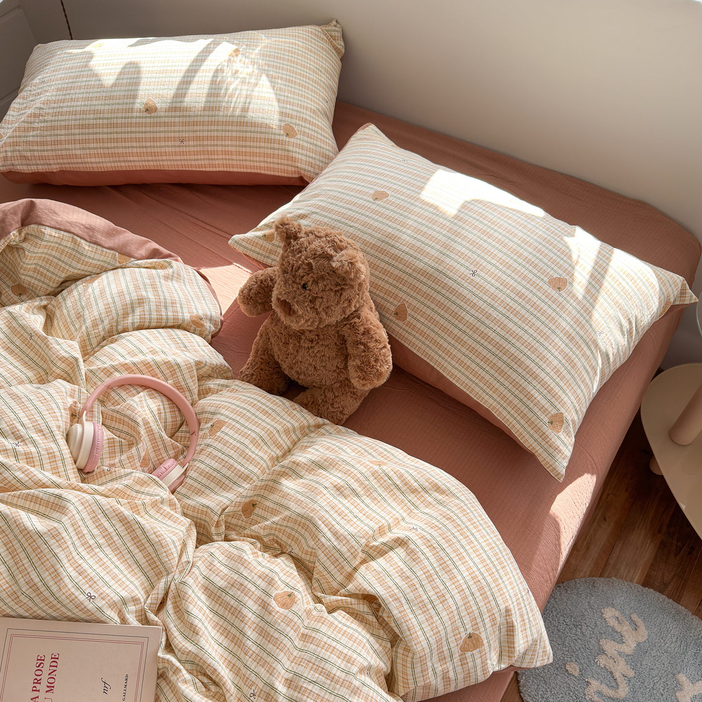 当前位置: 91家纺网 > 商品网购 > 床品套件 > 四件套 > 其它四件套 > 罗亿家纺 2026年新款泡芙水洗棉双层纱四件套 南瓜日记