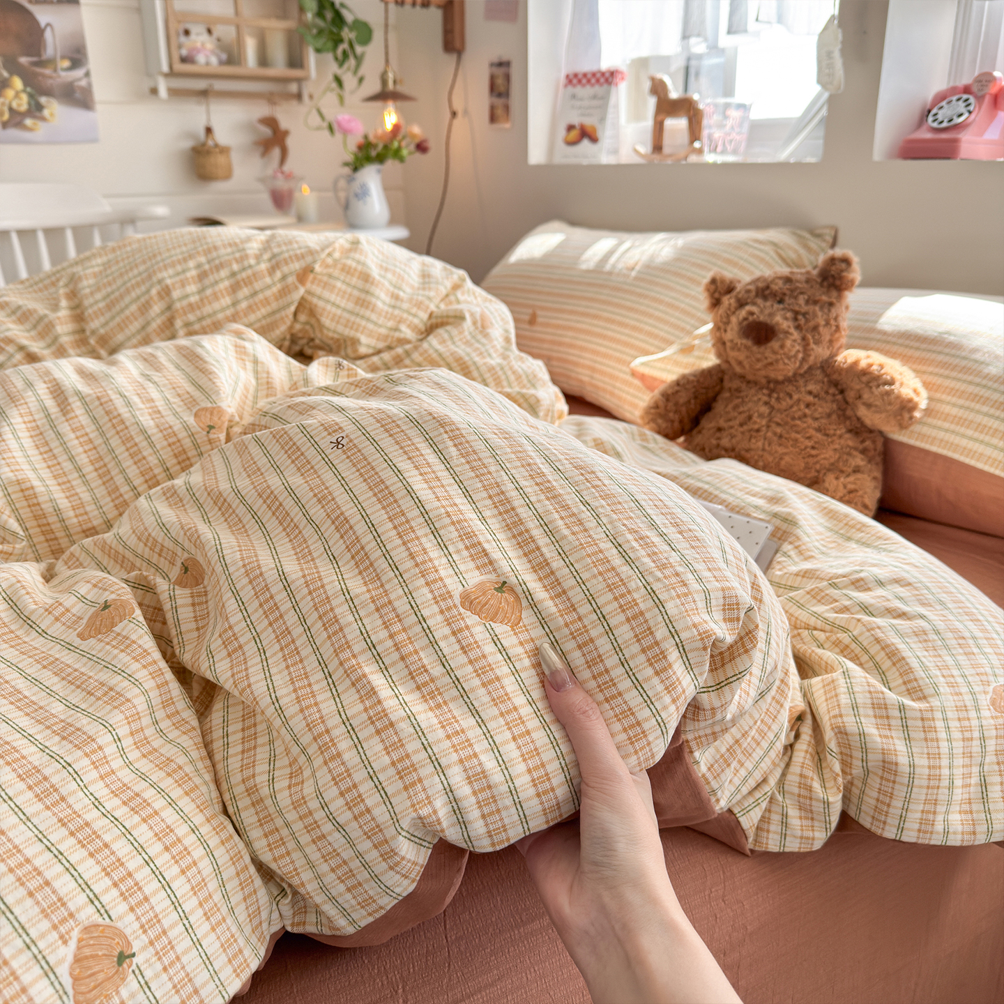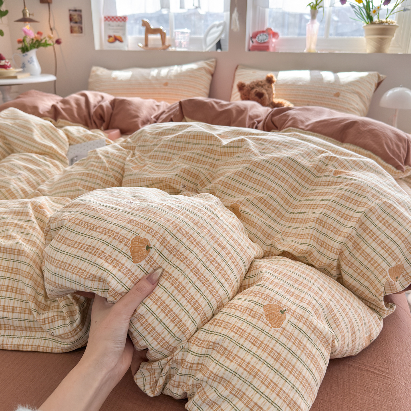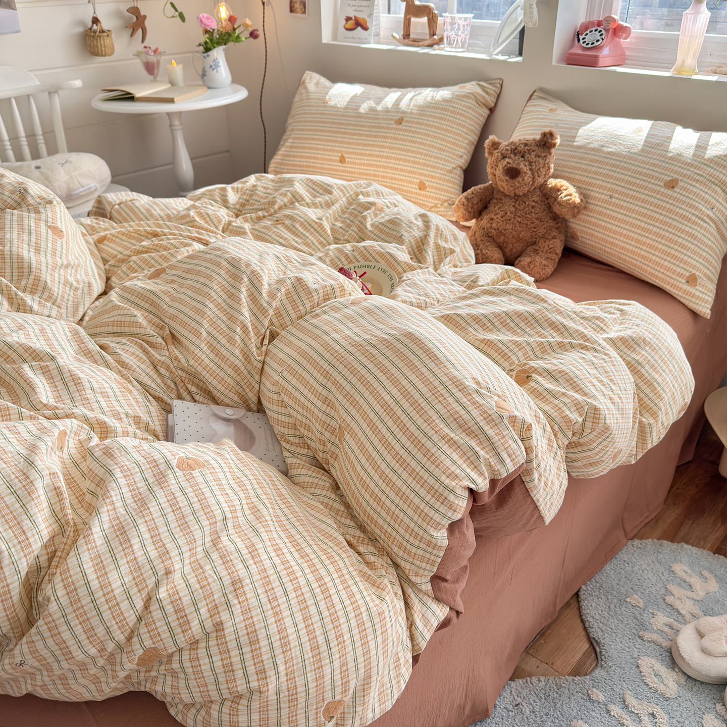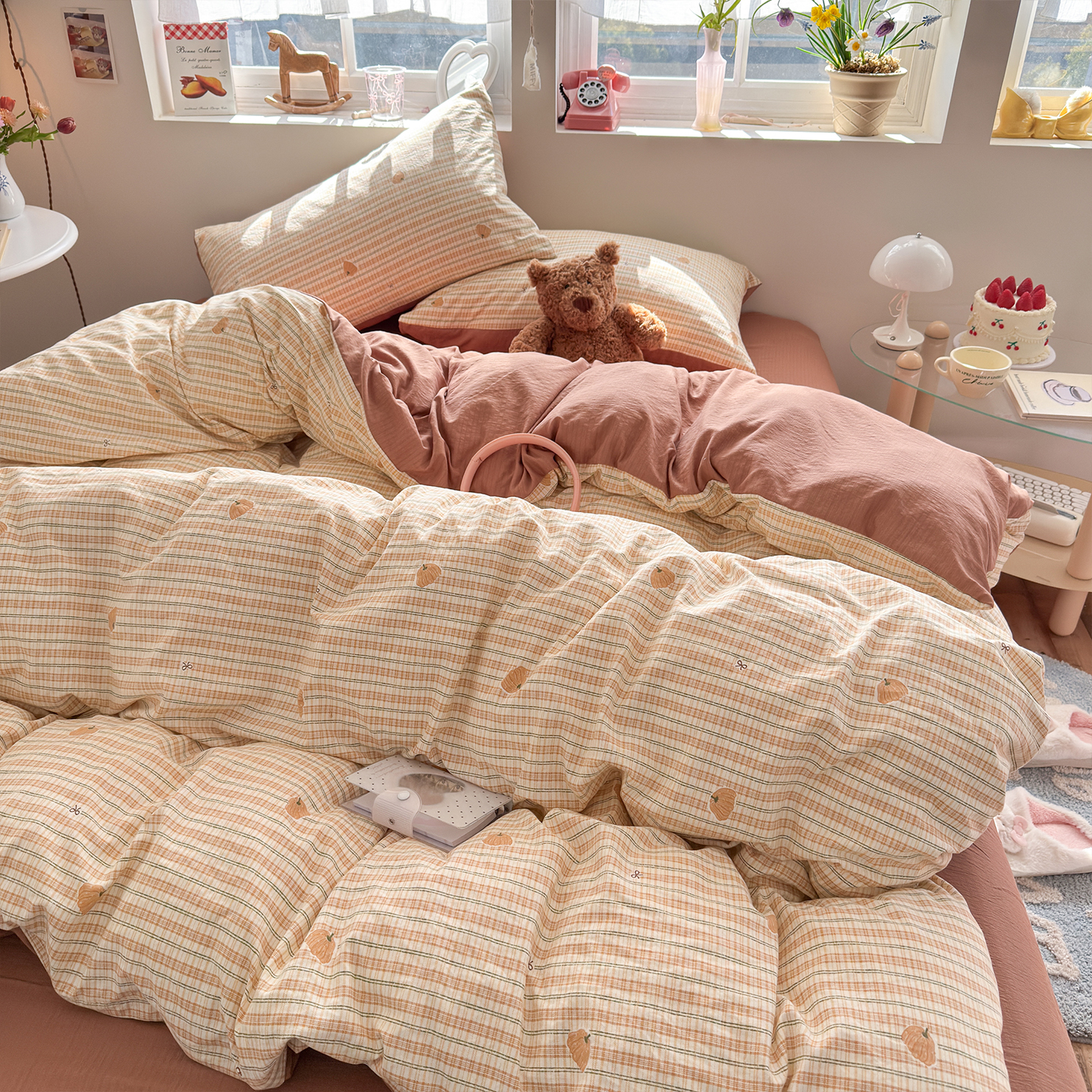 当前位置: 91家纺网 > 商品网购 > 床品套件 > 四件套 > 其它四件套 > 罗亿家纺 2026年新款泡芙水洗棉双层纱四件套 南瓜日记