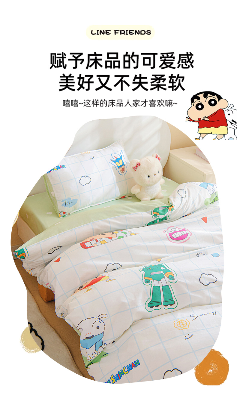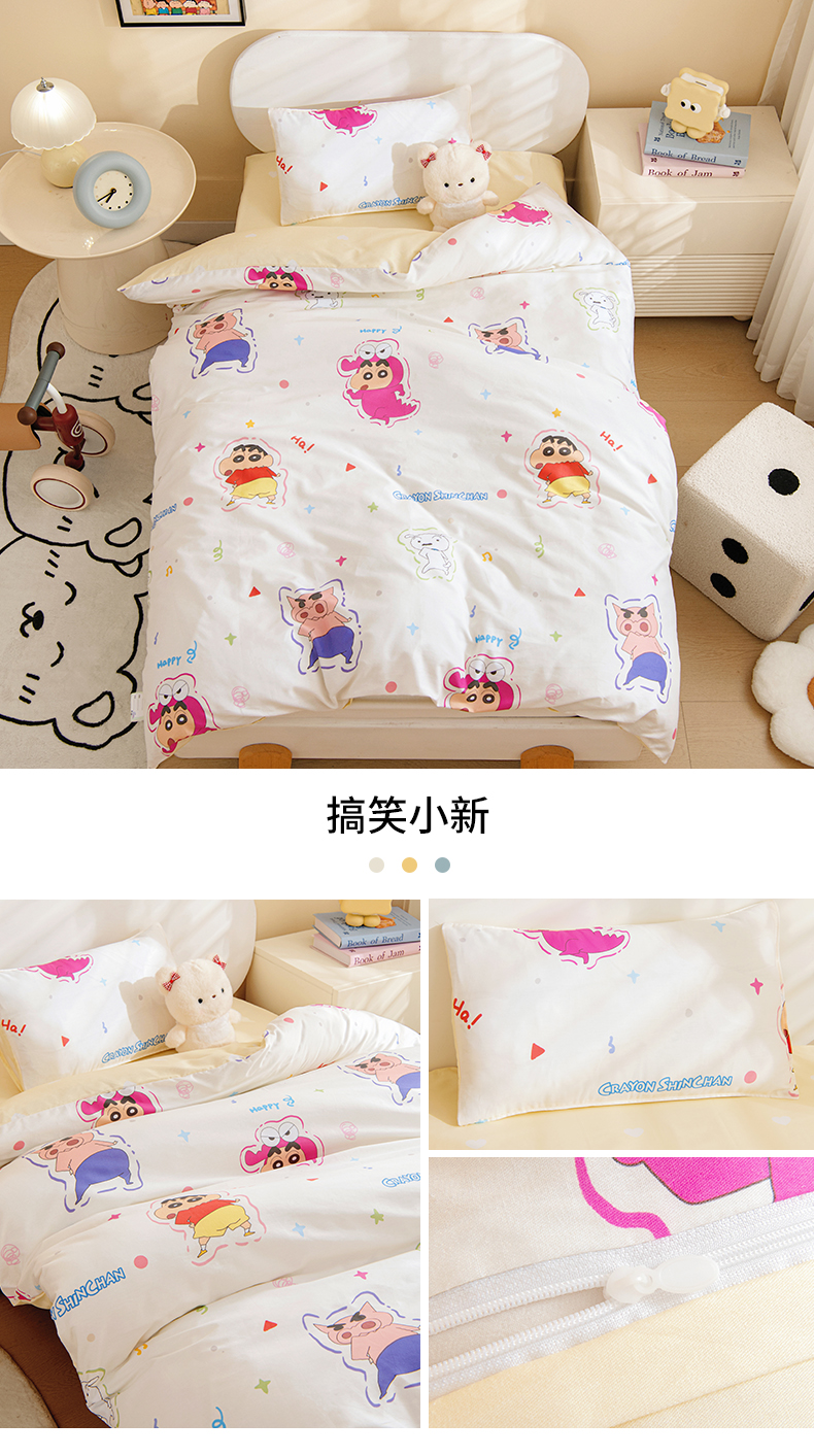 • 91家纺网 家纺一手货源 找家纺 孩子王家纺 2026新款卡通全棉纯棉正版授权蜡笔小新幼儿园套件三件套六件套多件套 春日部家族