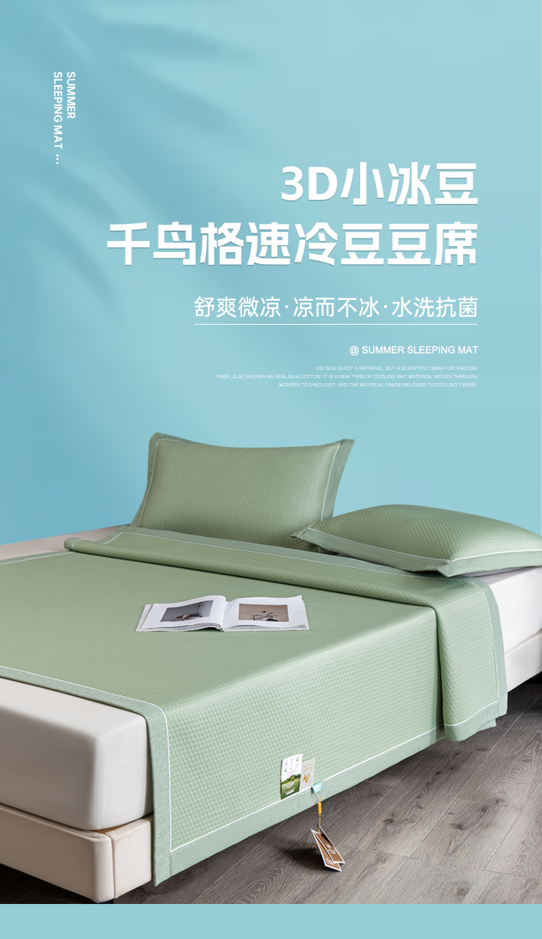 小牛席业 2026新款经典款-千鸟格冷感豆豆席系列 绿色