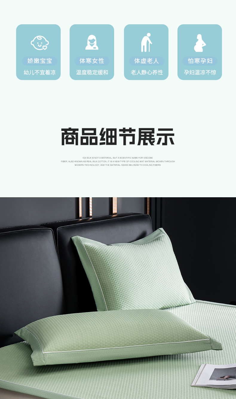 (总)小牛席业 2026新款小冰块大象凉感冰丝席(床笠款)凉席竹席藤席冰藤席乳胶席豆豆席,绿色,粉色,灰色,蓝色,香槟