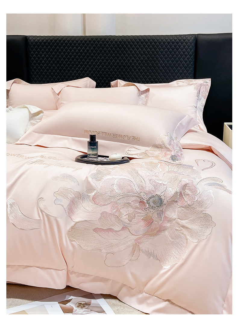 (总)星蕴家纺 2026新款50贡缎长绒棉纯棉绣花四件套-花瑾,花瑾-邂逅粉,花瑾-晴山蓝,花瑾-梦幻紫,花瑾-清新绿