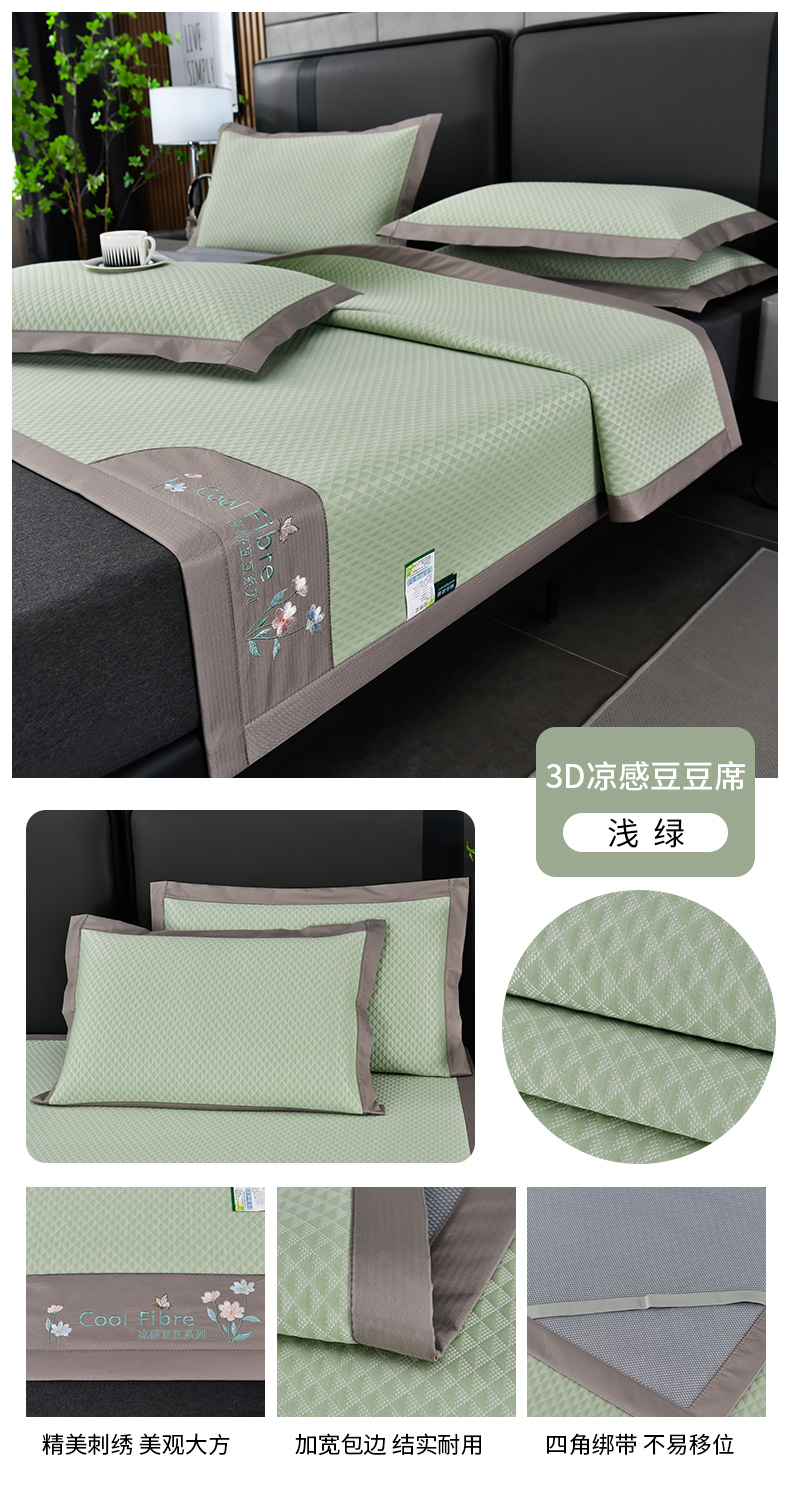 (总)2023新款超精密冰丝席-小斜纹系列-床笠款藤席凉席竹席,粉色,蓝色,绿色,银灰