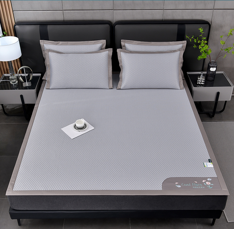 (总)小牛席业 2026新款半定位大提花凉感冰丝席(床笠款)凉席竹席藤席冰藤席乳胶席豆豆席,灰色,粉色,蓝色,香槟