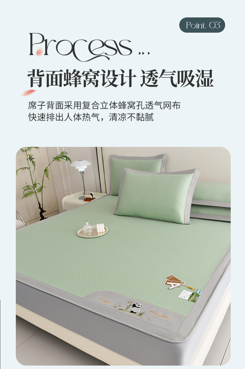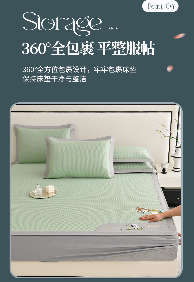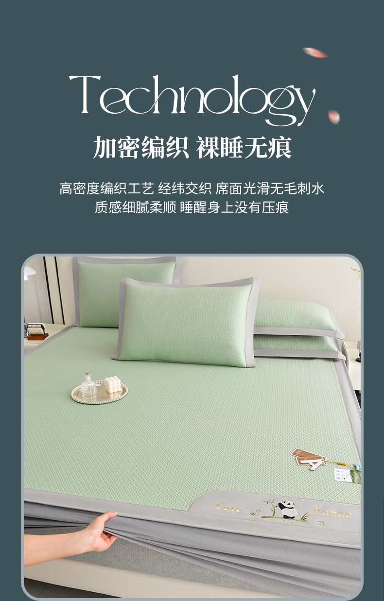 商品名称:小牛席业 2026新款爱家熊猫冷感豆豆席系列(床笠款) 绿色
