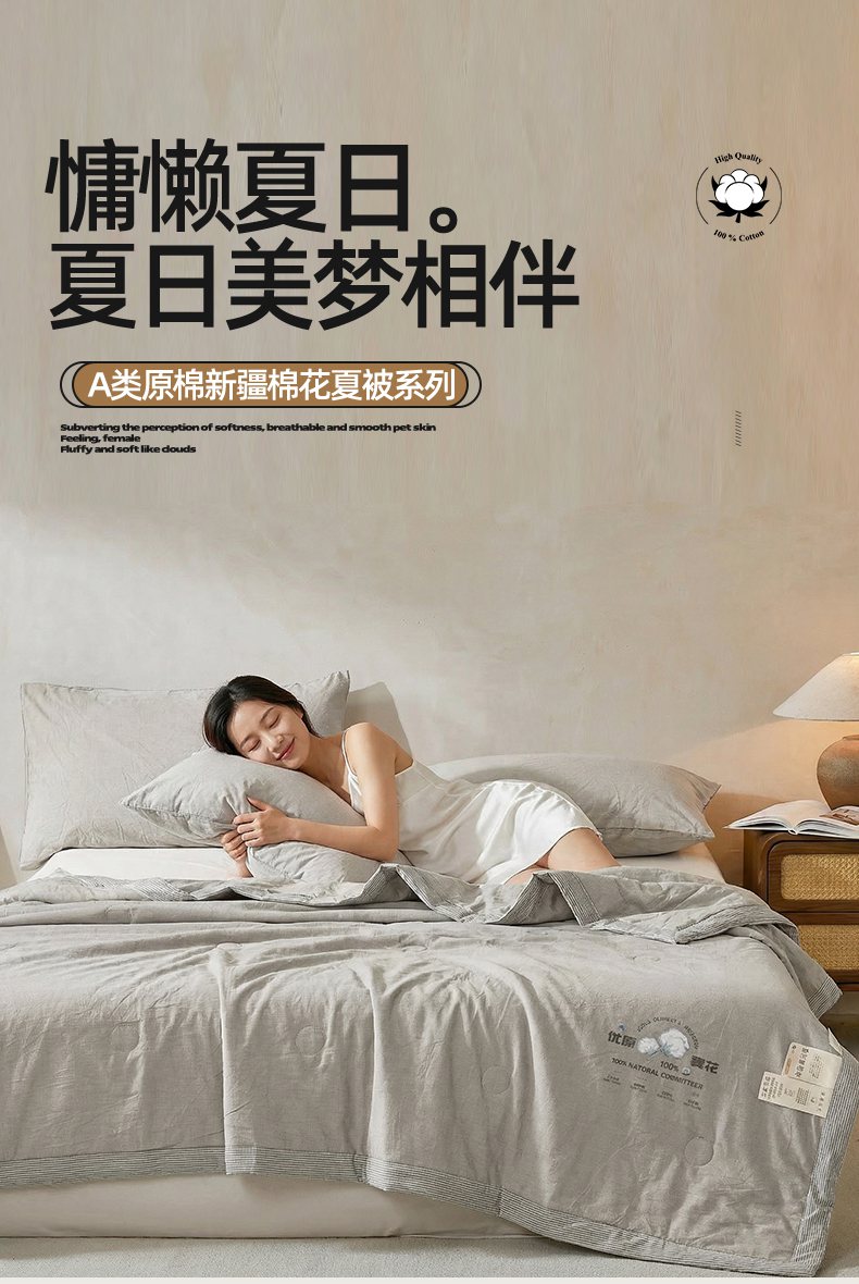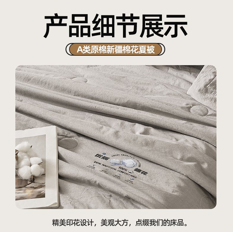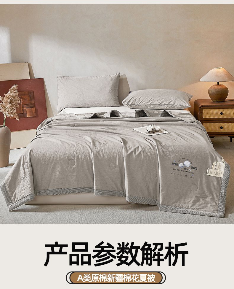 被子 > 夏被 > 招财星家纺 2026新款棉花夏被无印风纯色新疆棉夏凉被空调被棉花夏被棉花被子百分百新疆棉(含质检报告买家秀) 简雅-中灰
