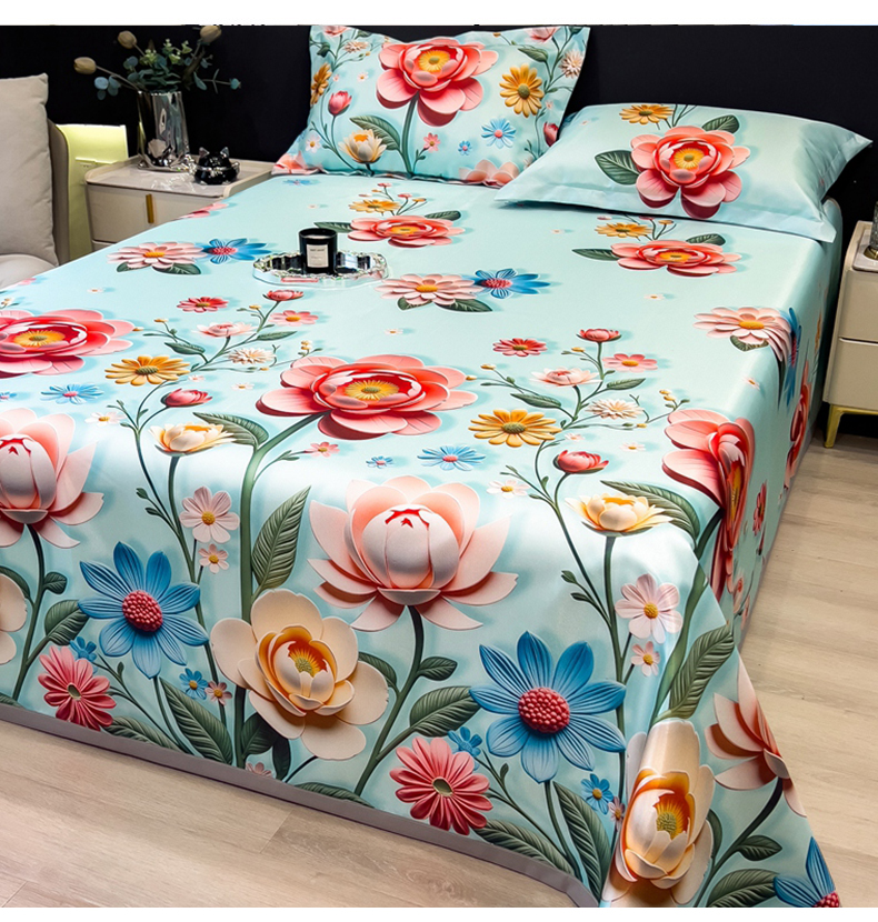 (总)许林家纺 2026爆款数码印花大版高克重冰丝凉席,夏木,花楹,绿野晴风,曼陀罗,牡丹,浅朵,四季花,星空幻想,孔雀