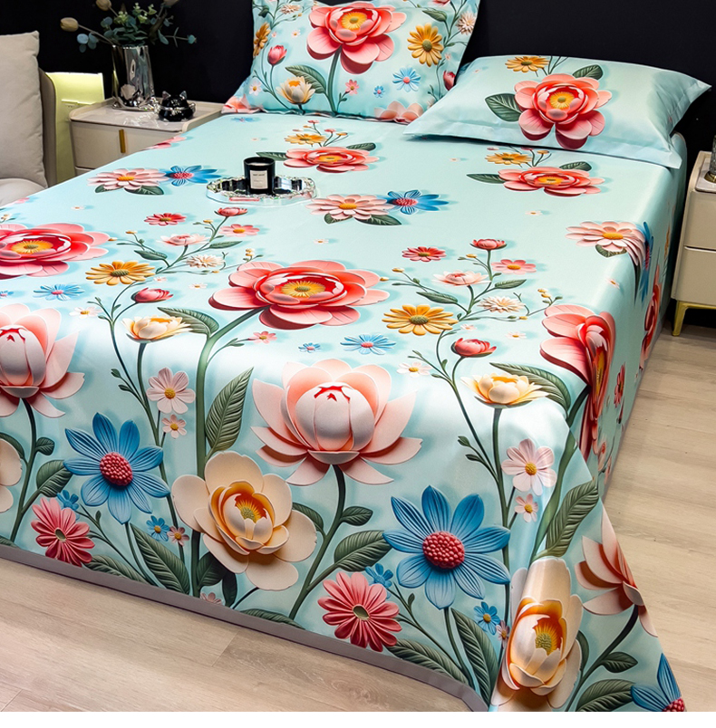 许林 2026新款冰丝凉席床单款凉席三件套 朵真,朵真