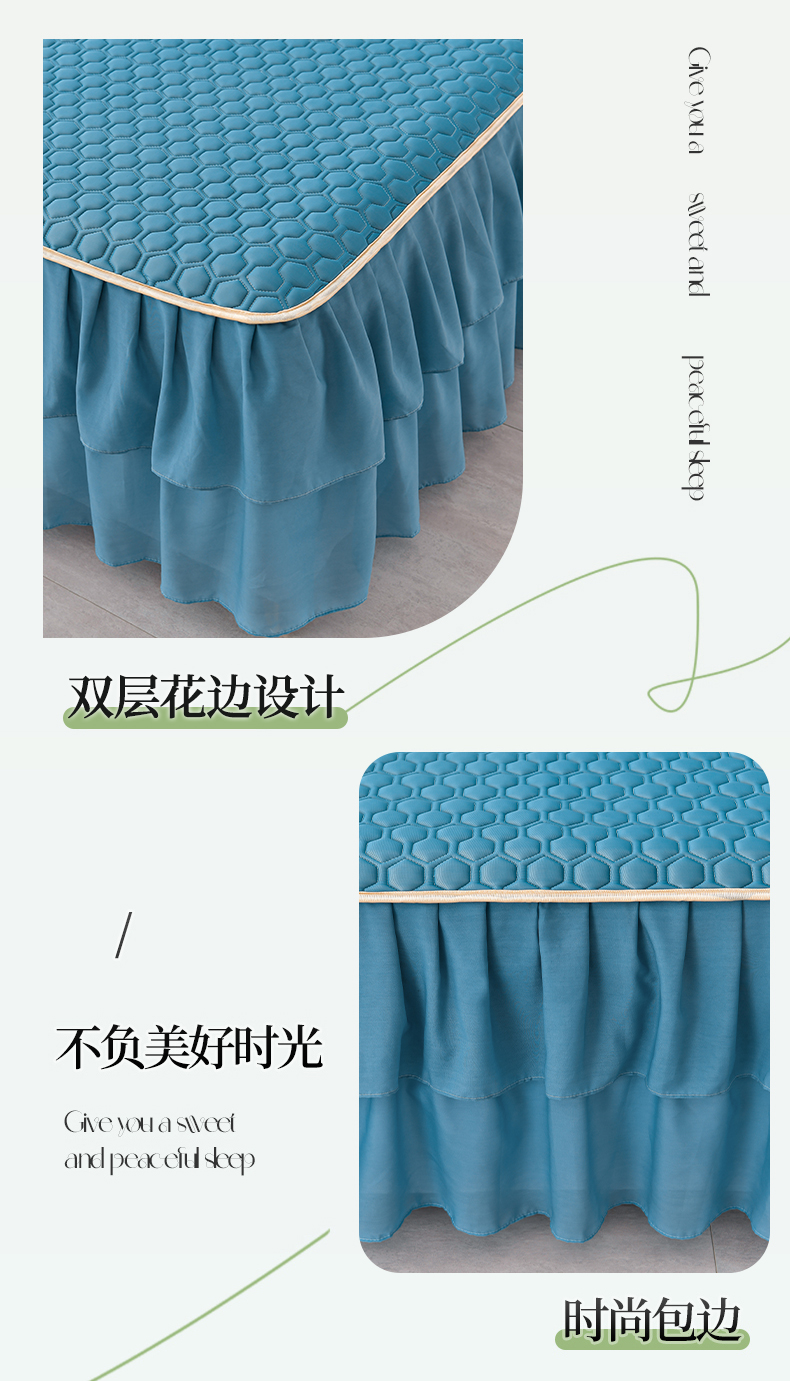 商品名称:畅畅家纺 2026新款凉感丝纯色双层边乳胶床裙凉席两件套三件套足球花系列 足球花-宾利蓝