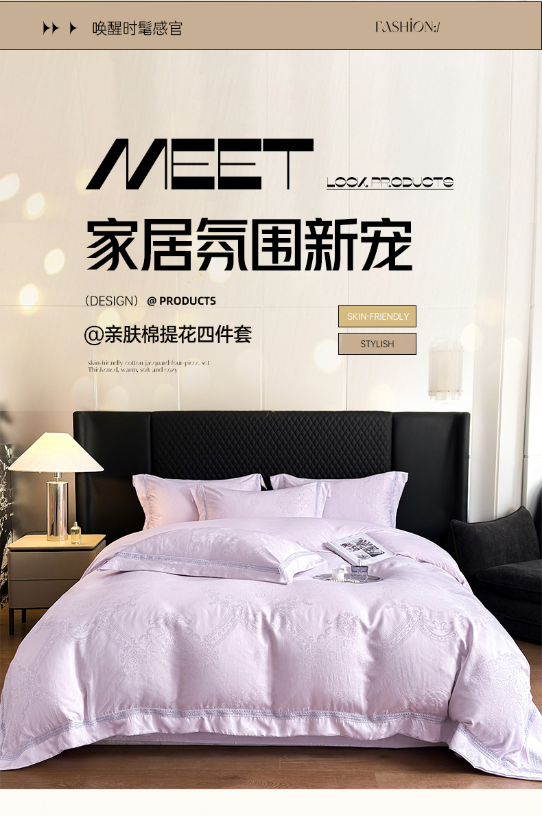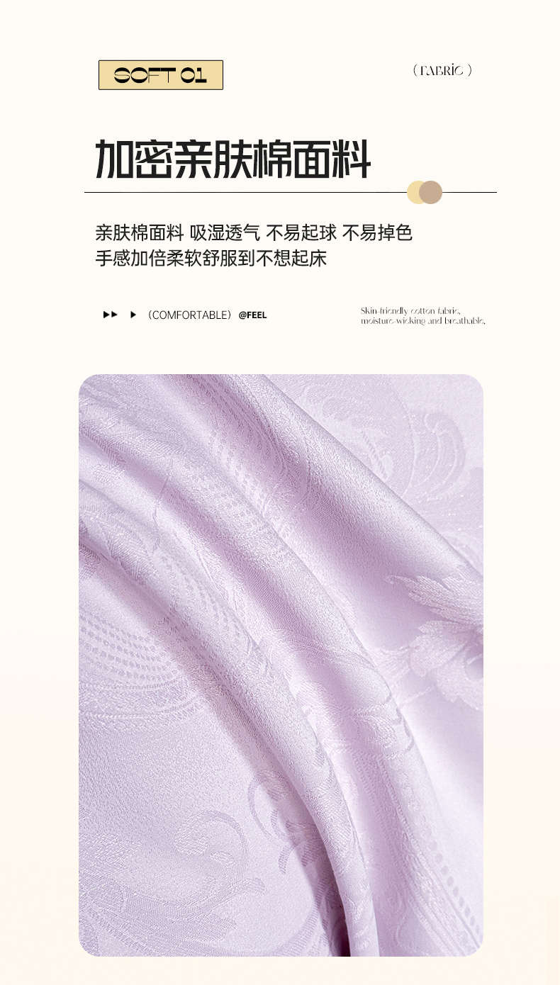 当前位置: 91家纺网 > 商品网购 > 床品套件 > 四件套 > 其它四件套 > 豪美鑫 2026新款亲肤棉提花四件套-奥莉维亚 奥莉维亚-淡紫