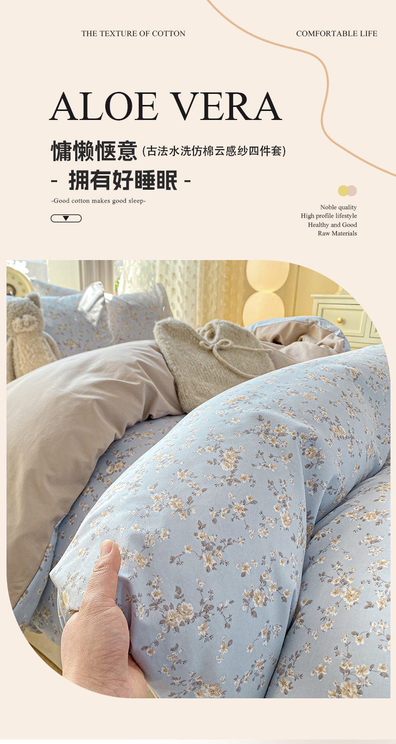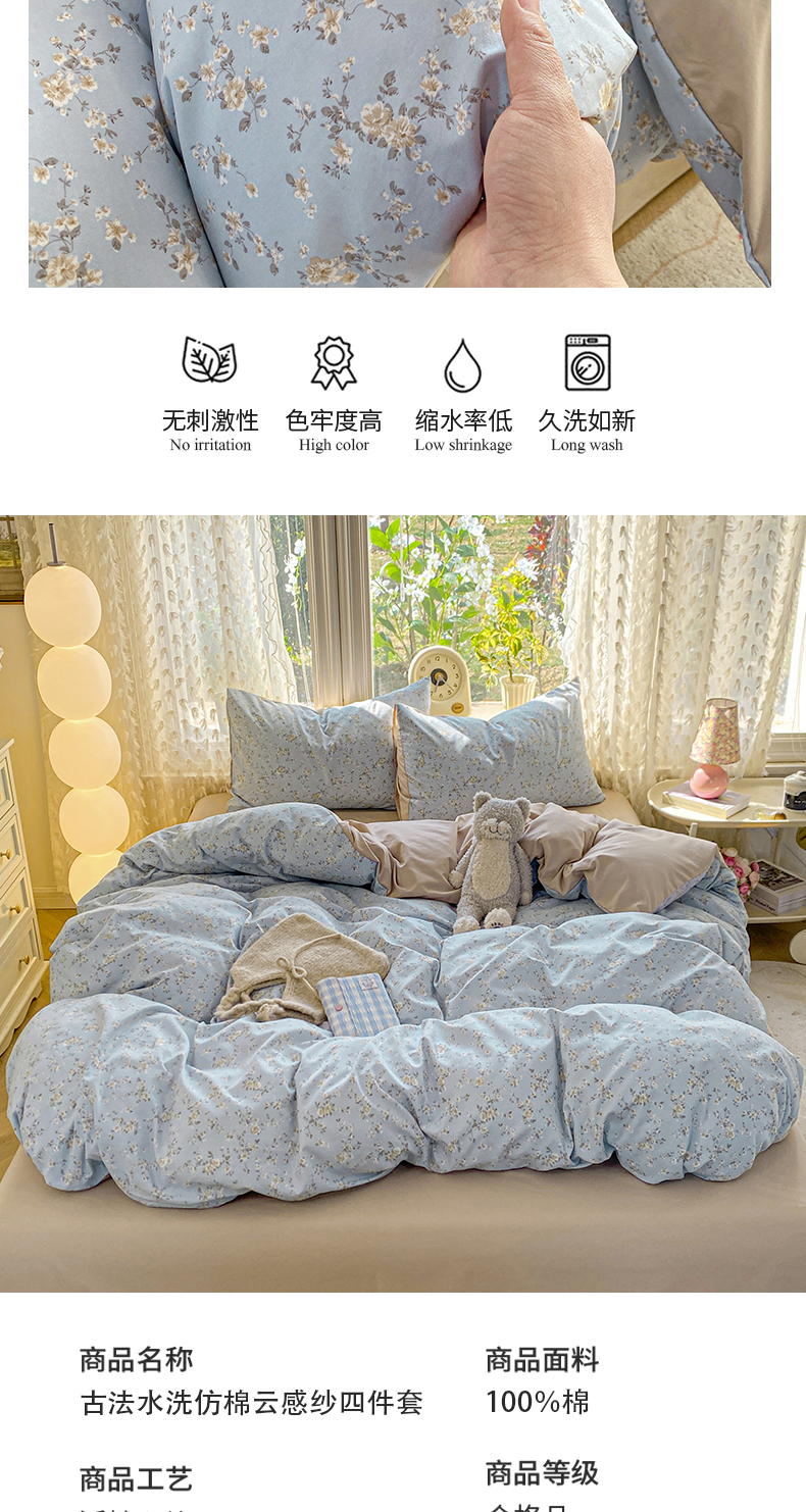 商品名称:豫见家纺 2026新款古法水洗仿棉云感纱四件套 晨露