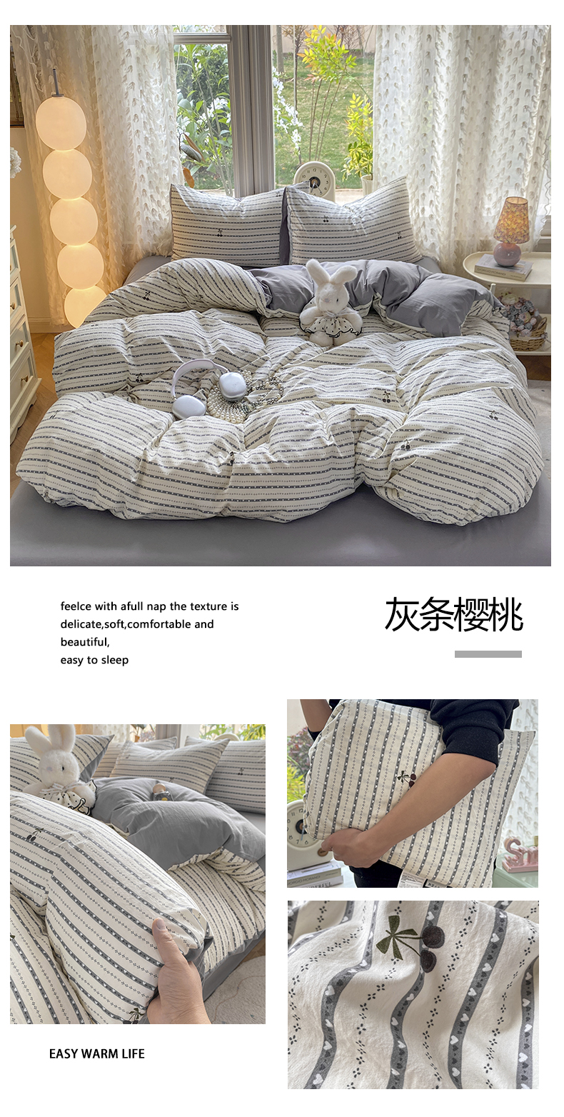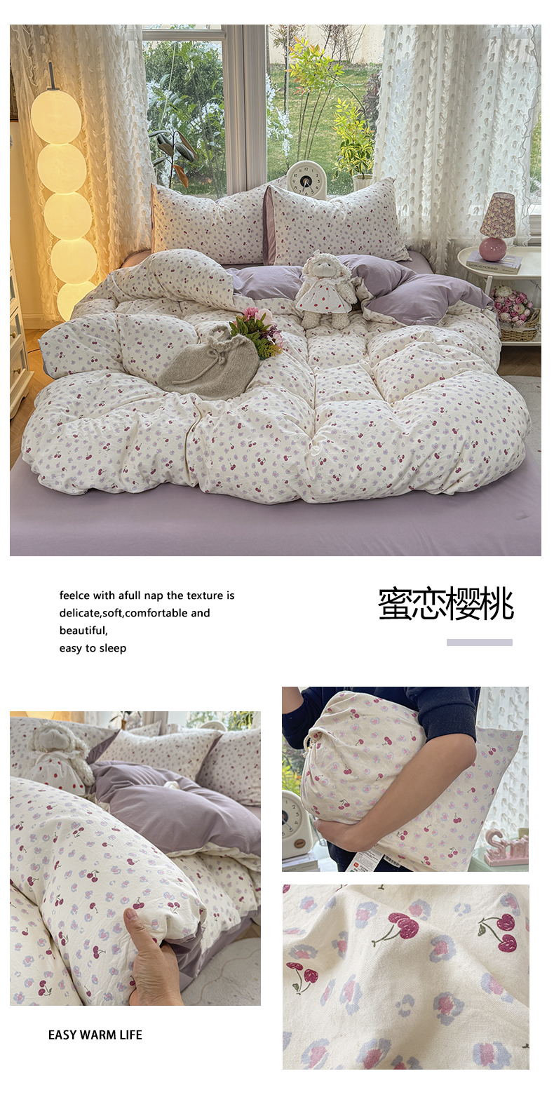 (总)豫见家纺 2026新款古法水洗仿棉云感纱四件套,小鱼心事,爱心格纹,安妮碎花,豹纹咖,彩波波,彩心心,草莓点点,晨露,初夏,梵高映像,乖巧KT-粉,乖巧KT-蓝,赫莲娜,灰条樱桃,吉米兔-灰,吉米兔-紫,浆果,兰枝玉树,梦屿,秘密花园,蜜恋樱桃,木马乐园,南瓜派,千野合,甜心乐园,晚安小星星,夏日初恋,小黄花,小猫钓鱼,小幸福,樱川桃井,知秋