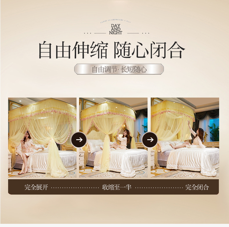 商品名称:舞夜盛世 2026新款U型蚊帐伸缩蚊帐落地宫廷蚊帐加厚烤漆支架-全年有货-闭月羞花 闭月羞花-玉色