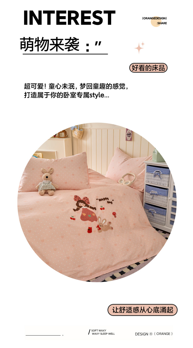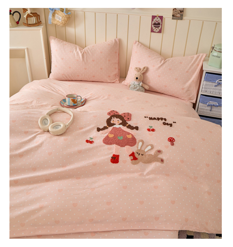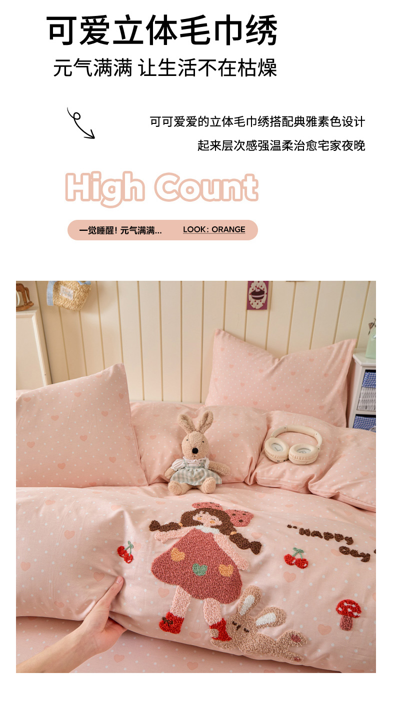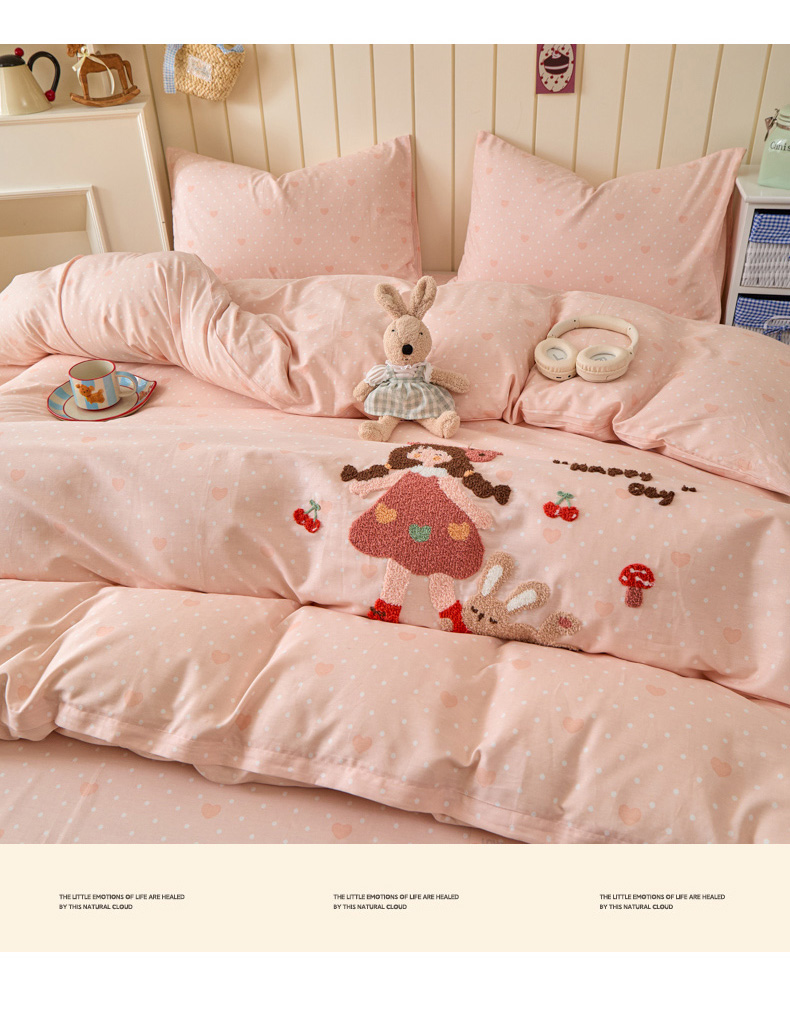 倾慕家纺 2026新款全棉卡通毛巾绣系列四件套 小兔女孩