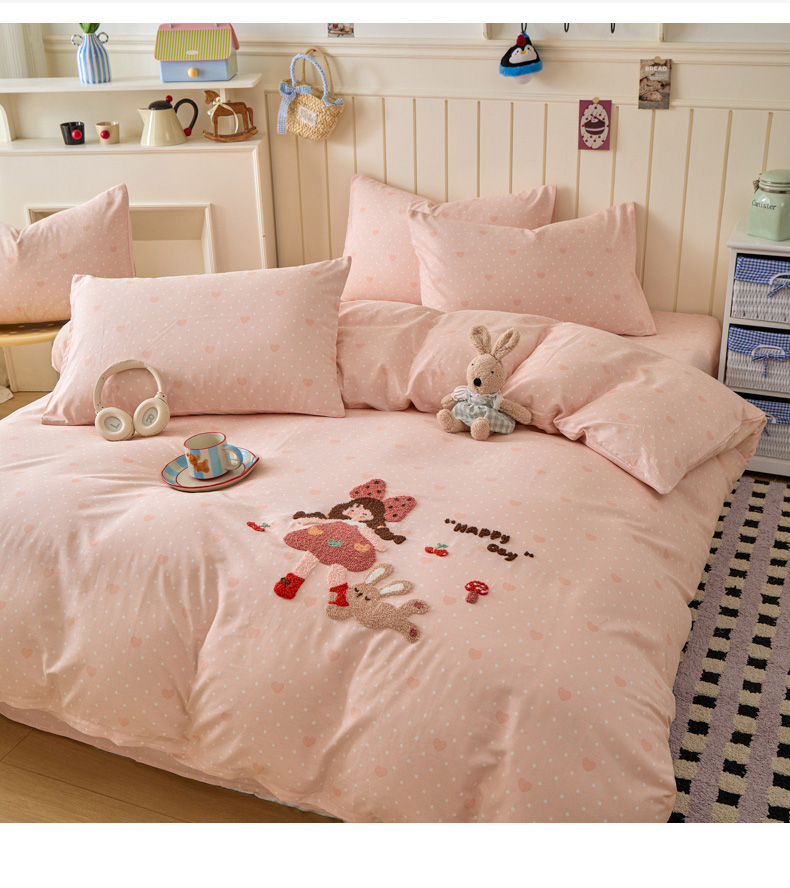 商品名称:倾慕家纺 2026新款全棉卡通毛巾绣系列四件套 小兔女孩
