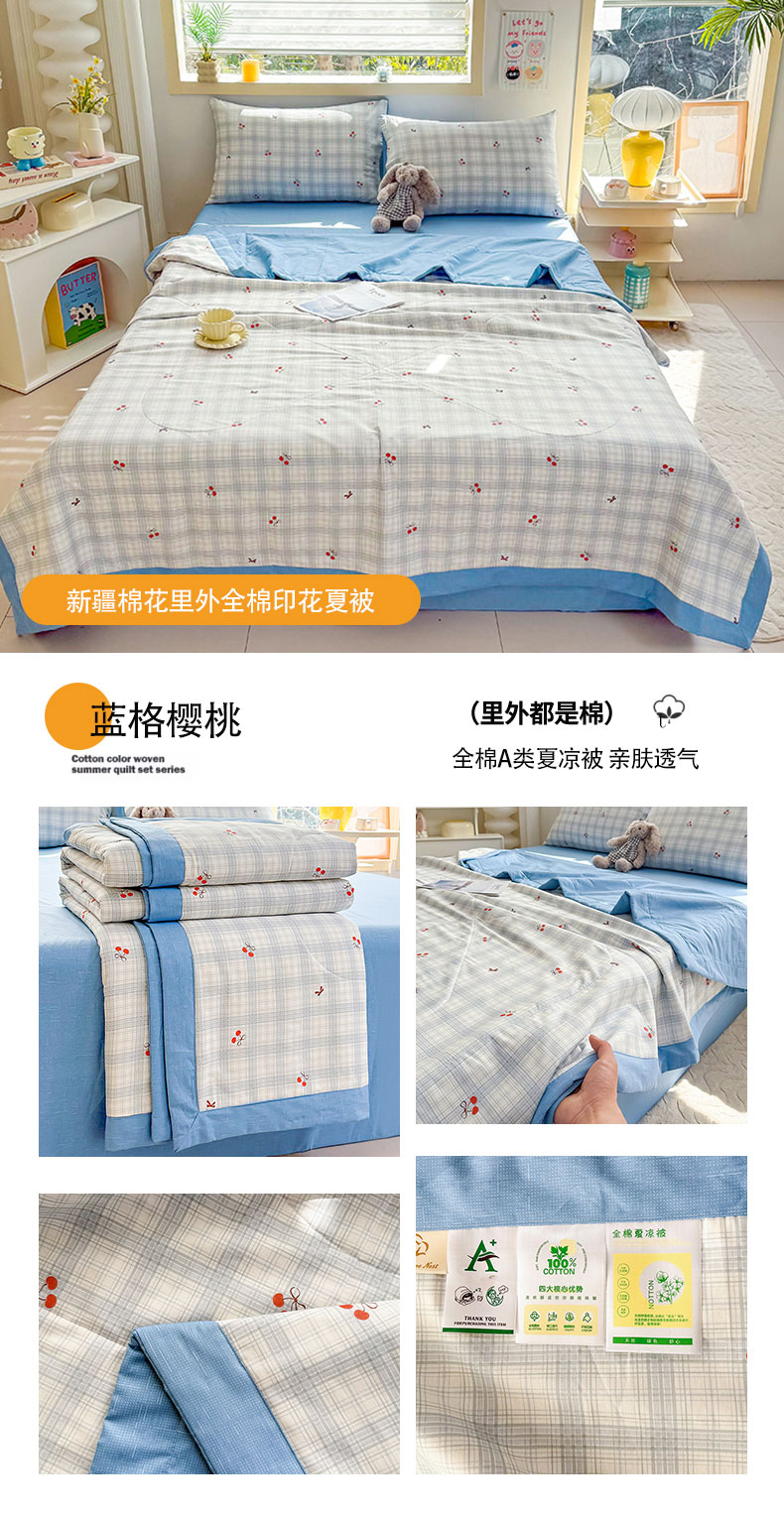 商品名称:禹祥家纺 (包质检)2026新款A类里外全棉新疆棉夏被夏凉被空调被儿童被 初春伊语