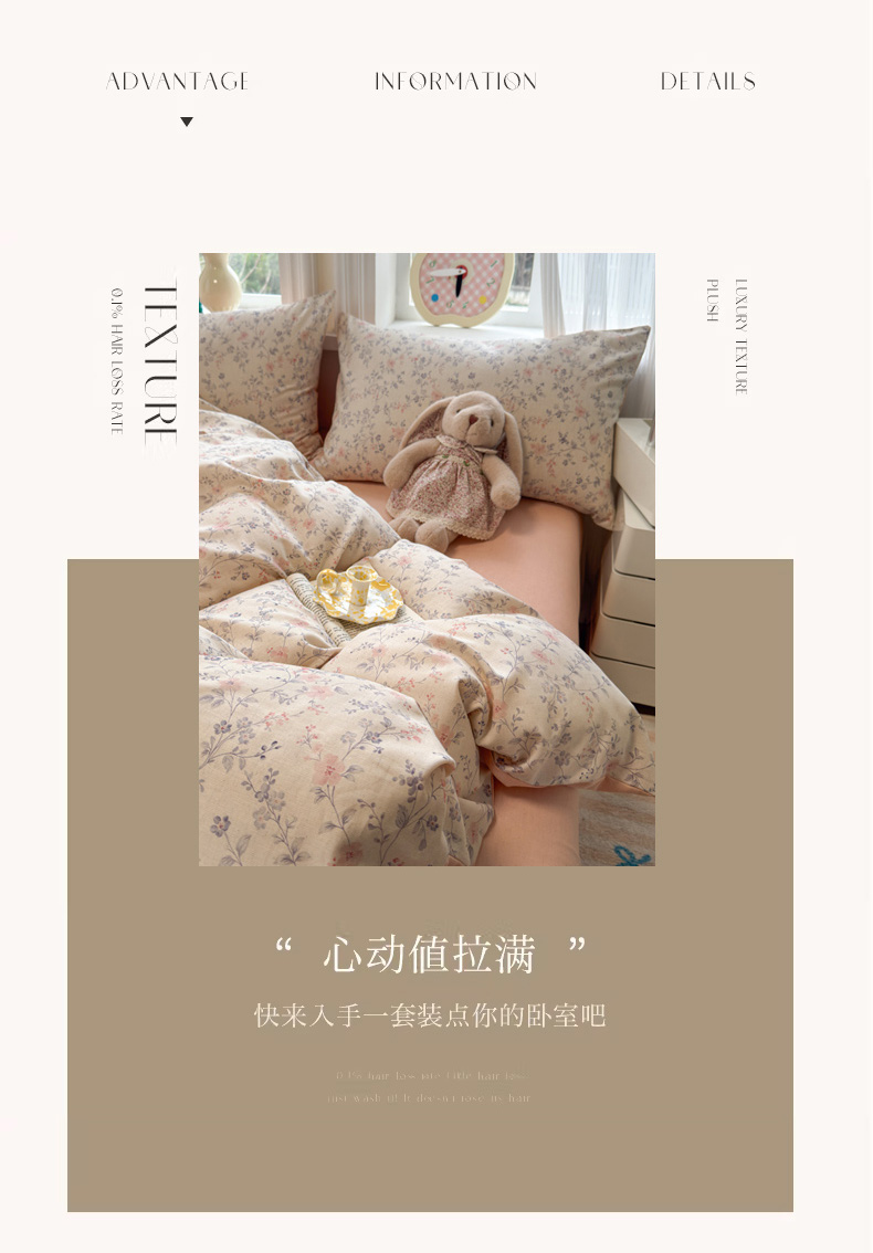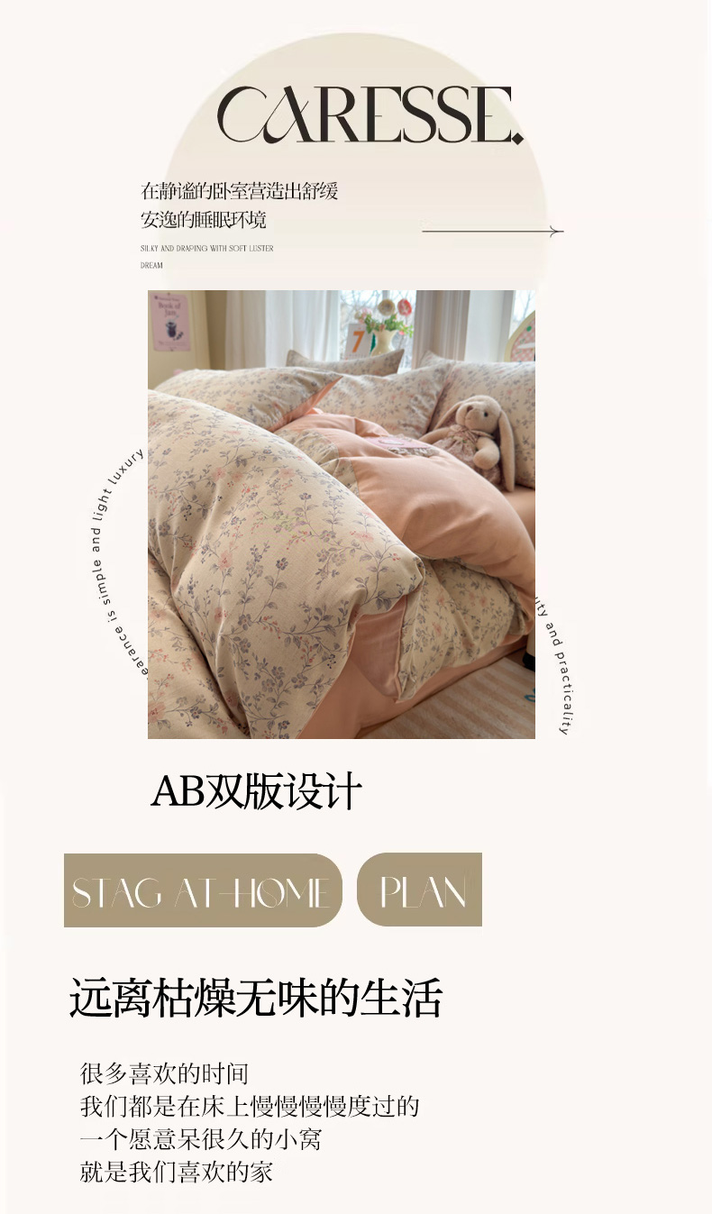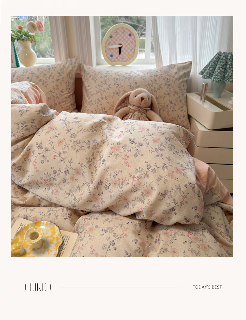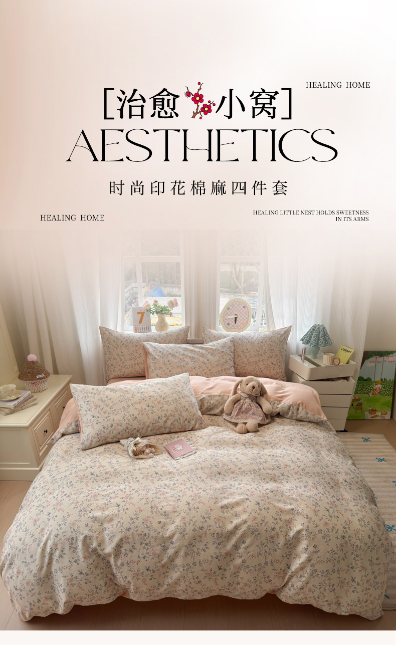 当前位置: 91家纺网 > 商品网购 > 床品套件 > 四件套 > 全棉普通四件套 > 如意朵 2026新款全棉棉麻印花四件套 粉黛