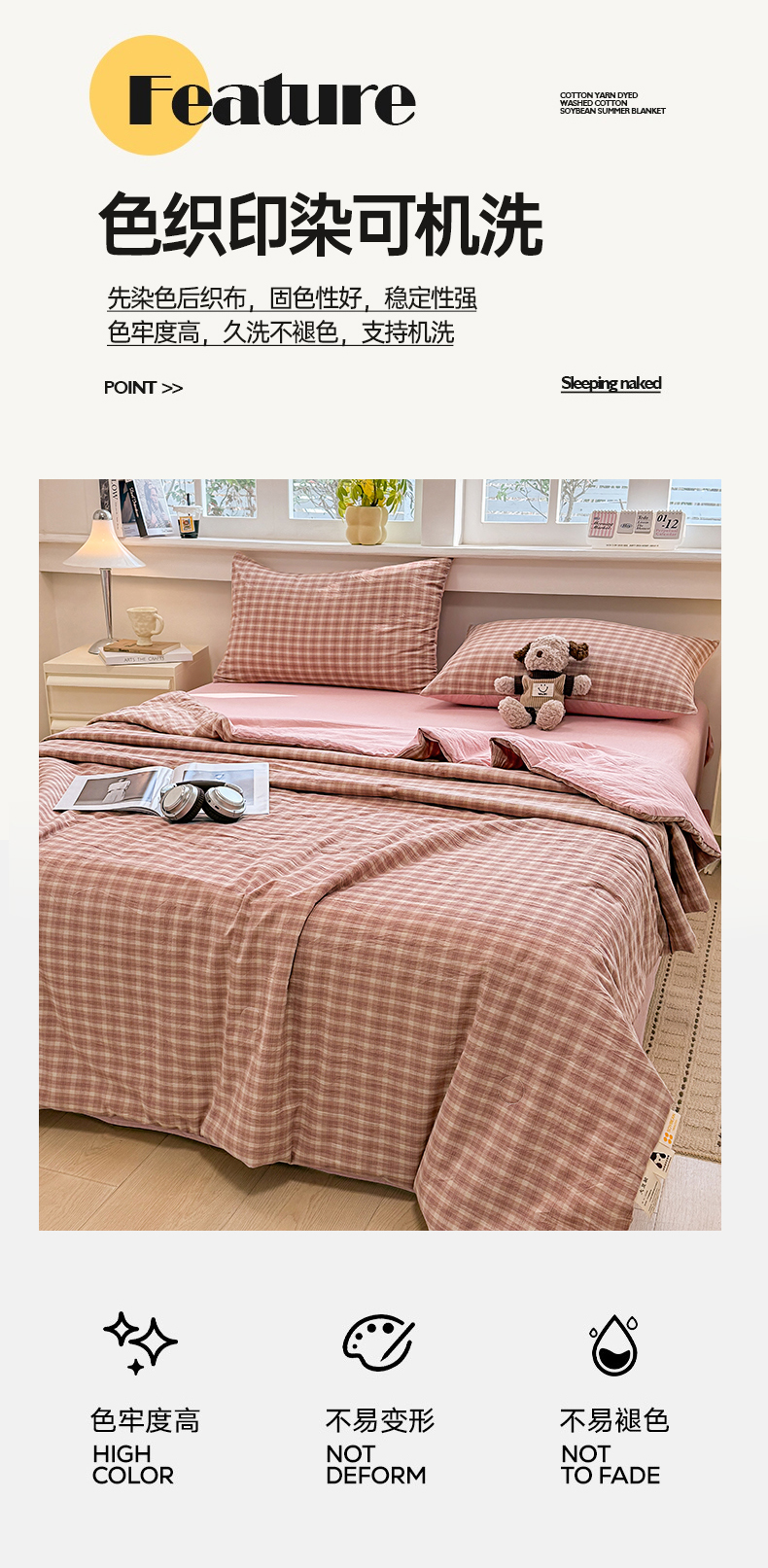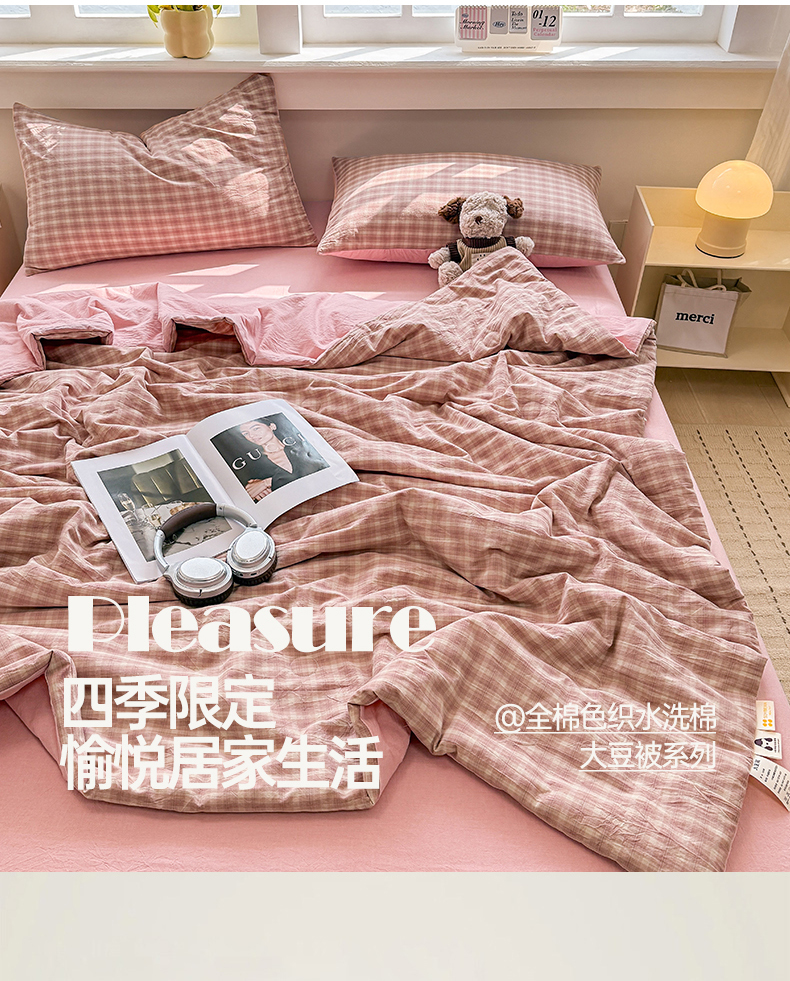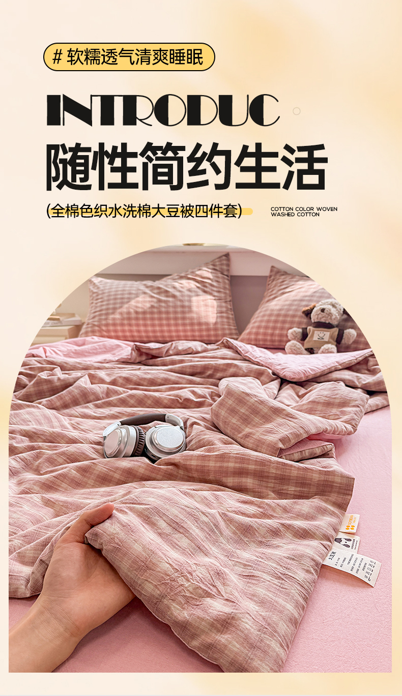 梦依依 2026新款全棉色织水洗棉大豆被四件套系列 浣花粉