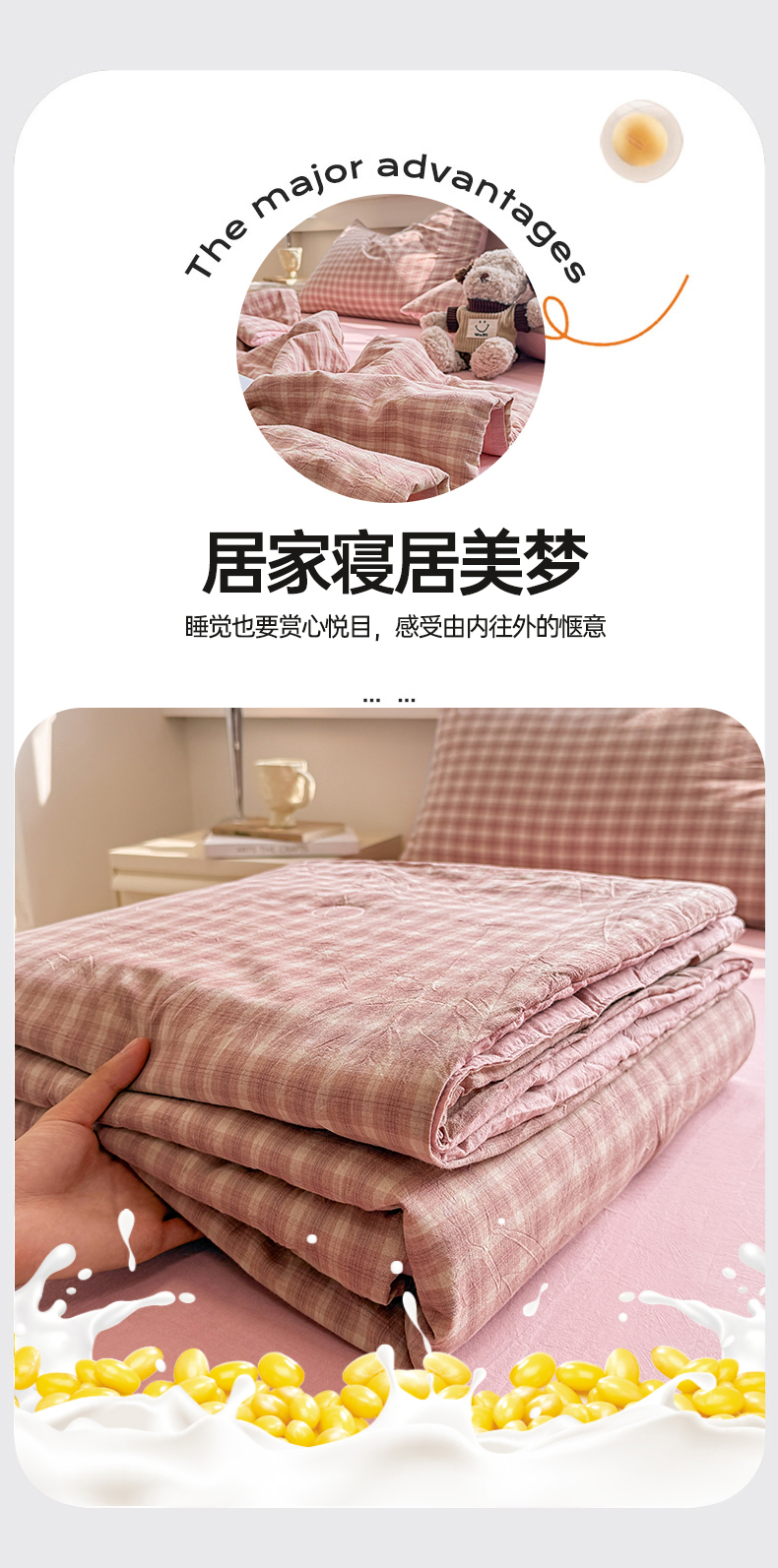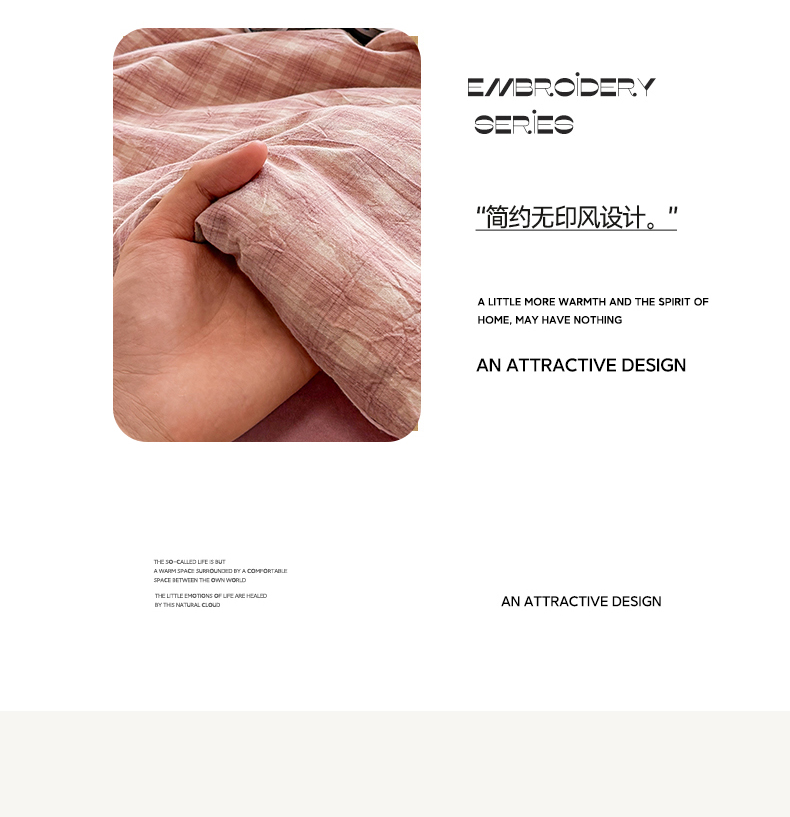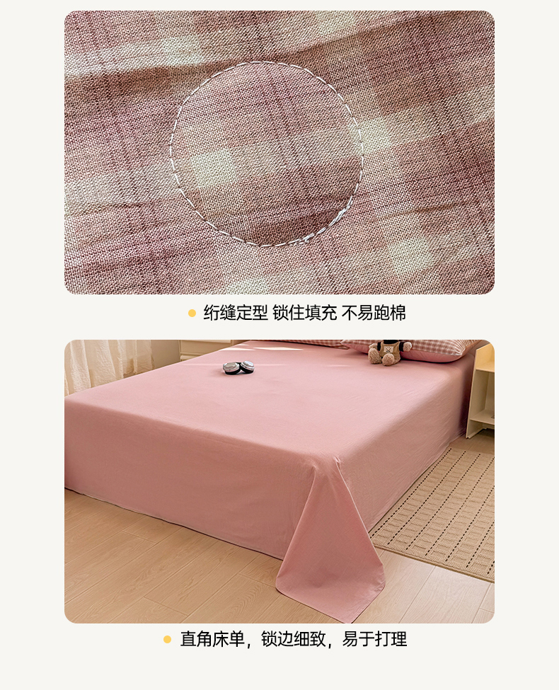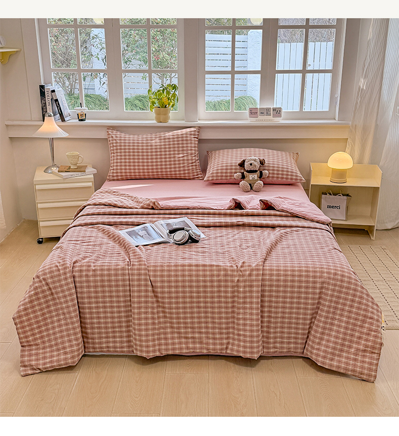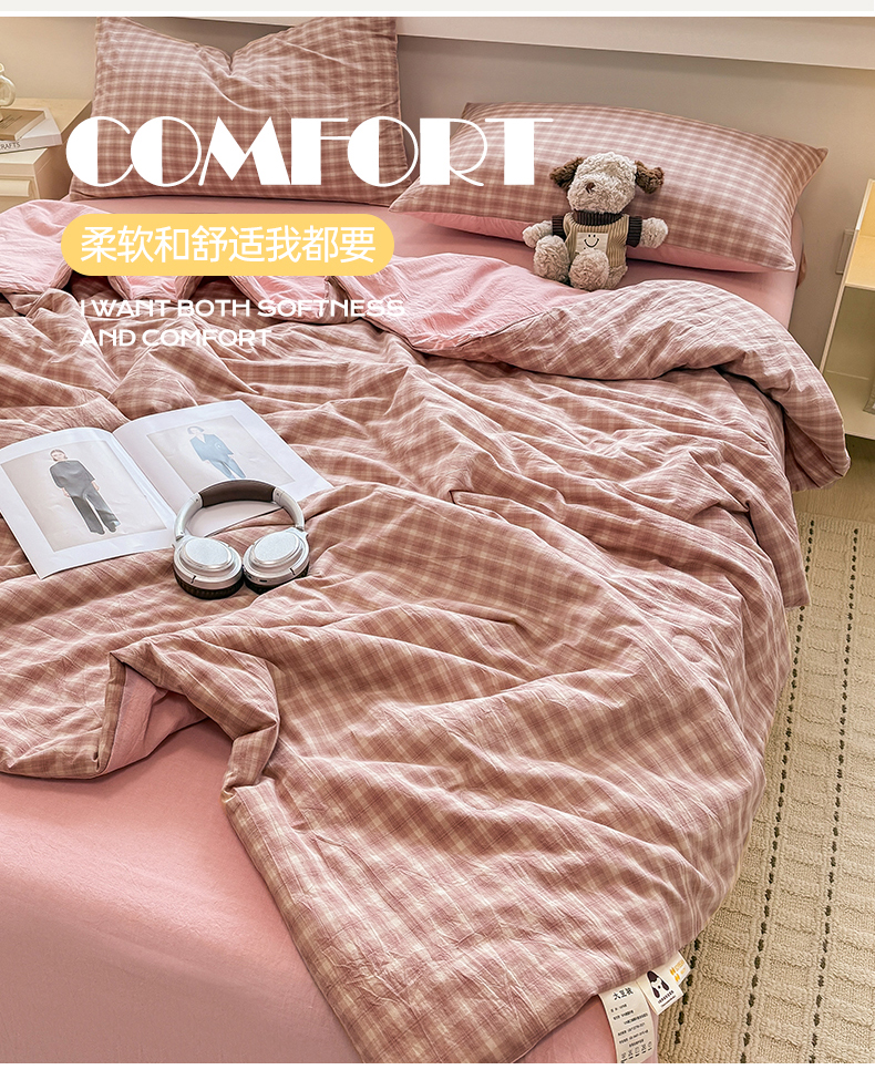 • 91家纺网 家纺一手货源 找家纺 梦依依 2026新款全棉色织水洗棉大豆被四件套系列 浣花粉