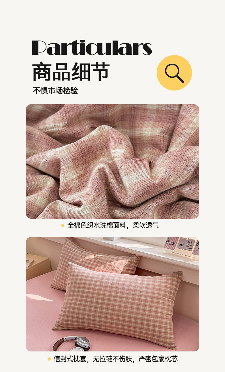 • 91家纺网 家纺一手货源 找家纺 (总)梦依依 2026新款A类全棉色织水洗棉纯棉格子钮扣款四件套学生宿舍三件套,巴赫,浣花,玛丽,小灰条,粉苏条,黑苏条,黑细条,灰细条,蓝苏条,绿苏条,晚晴红
