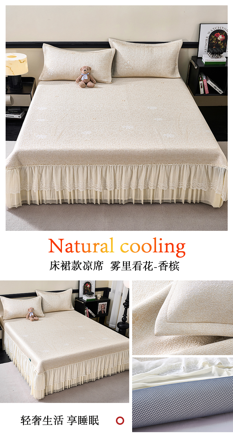 (总)青雅席业 2026年新款A类提花工艺(提花双面)凉感豆豆席床裙款