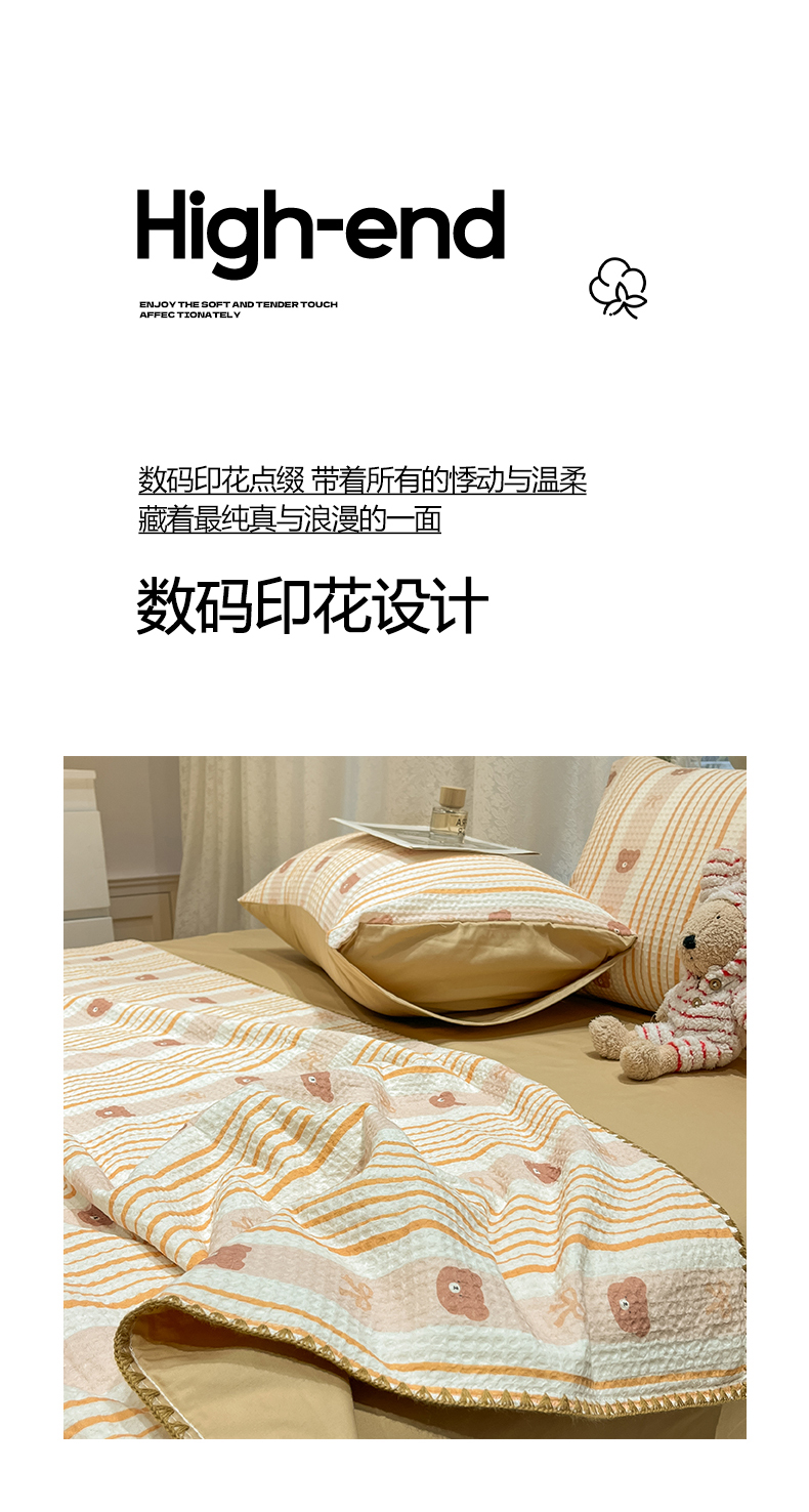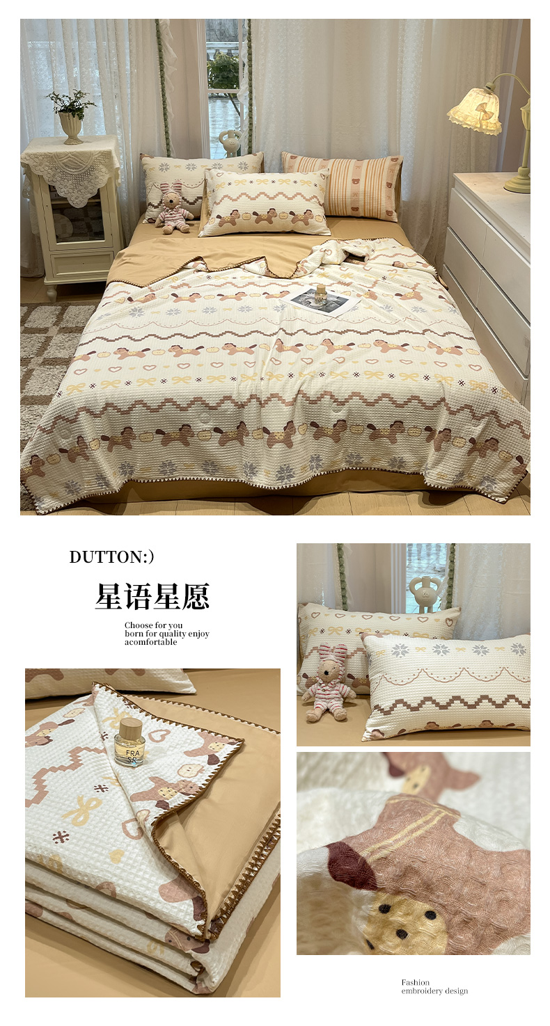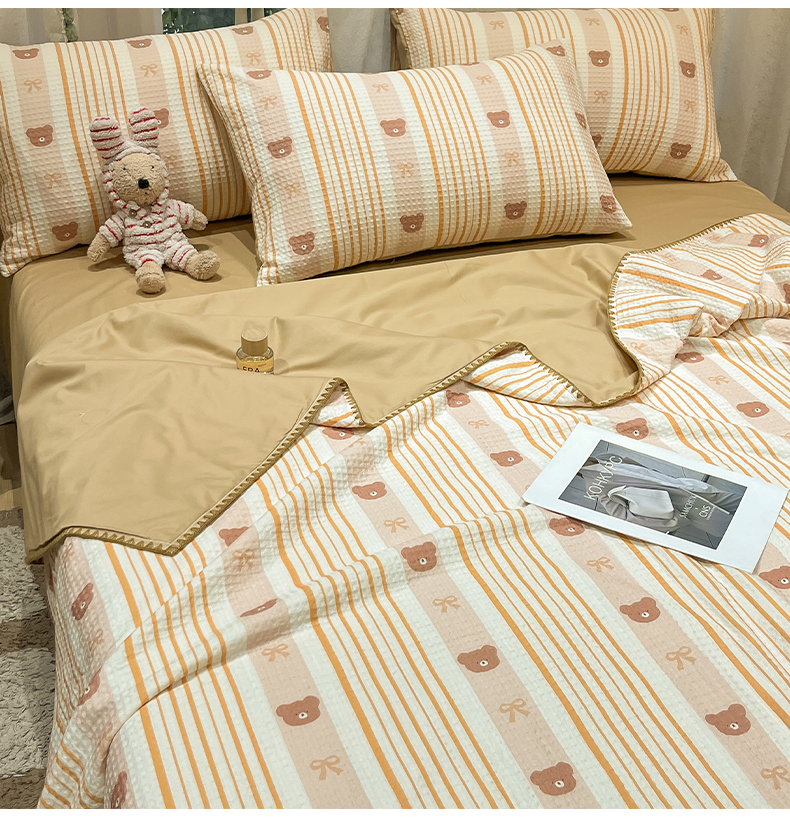 当前位置: 91家纺网 > 商品网购 > 床品套件 > 四件套 > 夏被四件套 > 一加一 2026春夏新款全棉立体华夫格数码印花大豆夏被四件套 比尔熊
