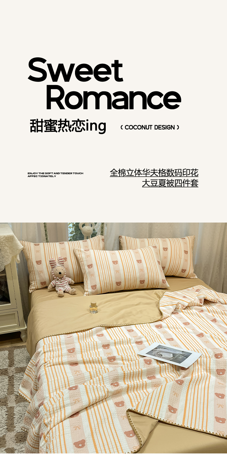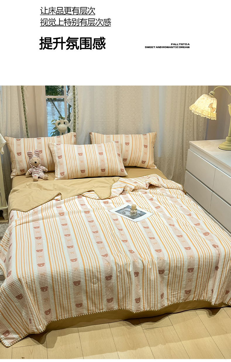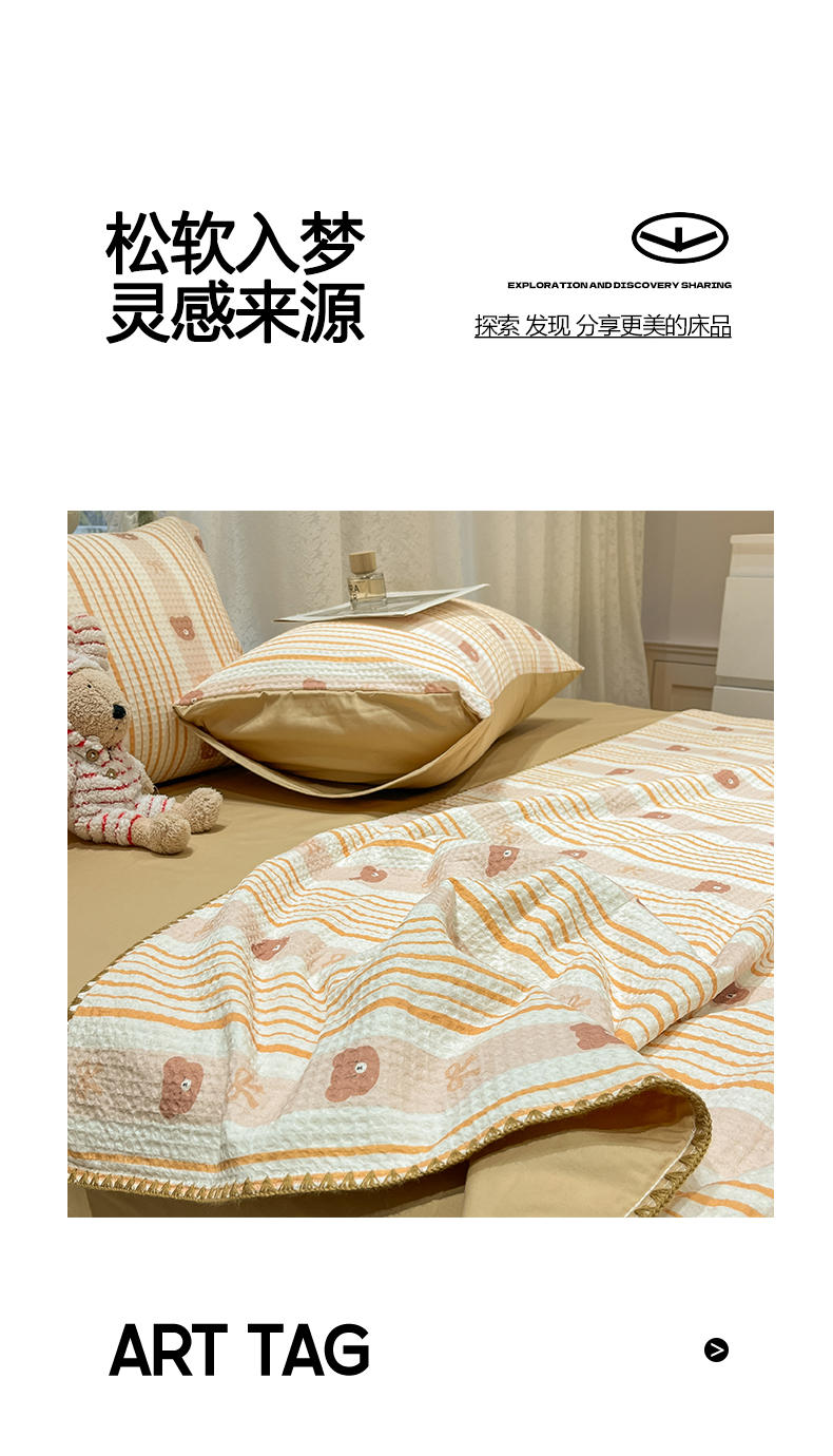 当前位置: 91家纺网 > 商品网购 > 床品套件 > 四件套 > 夏被四件套 > 一加一 2026春夏新款全棉立体华夫格数码印花大豆夏被四件套 比尔熊