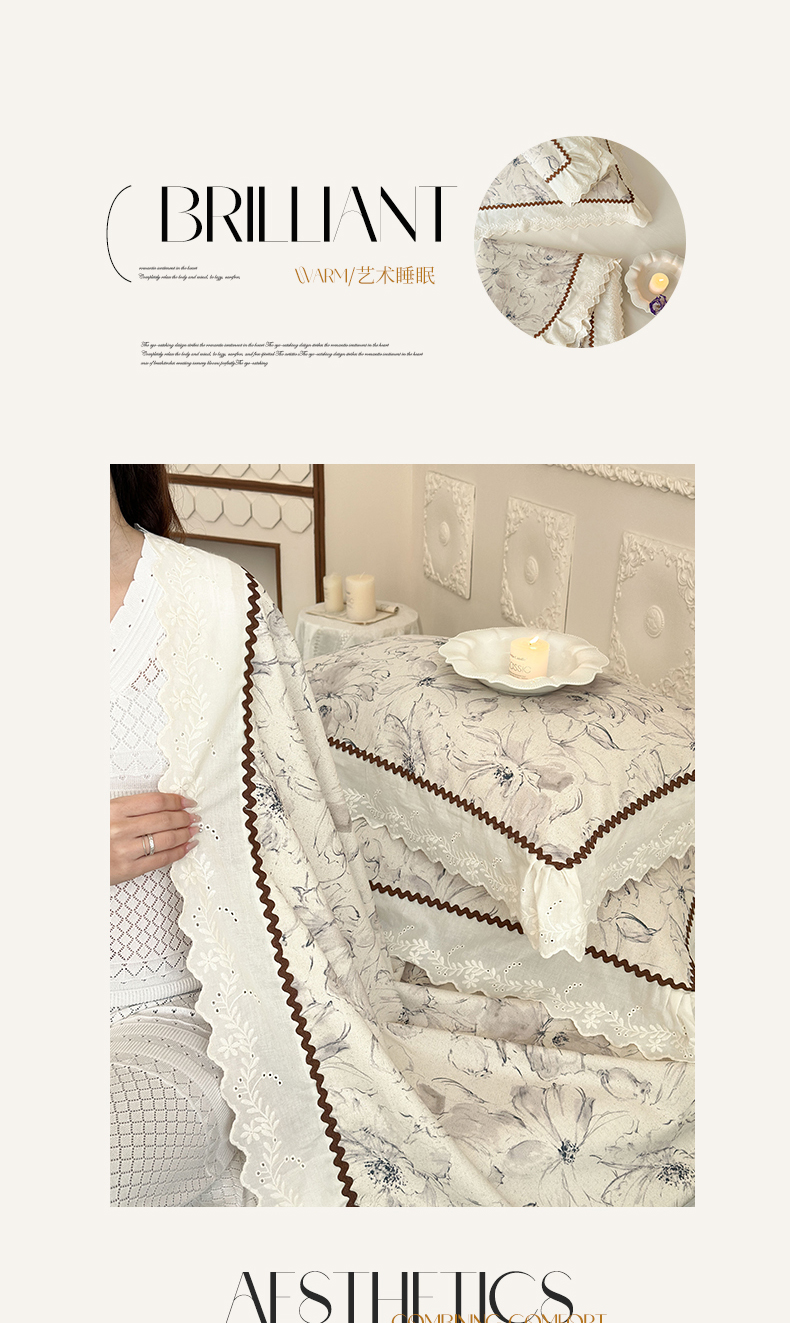 (总)乐朵家居 2025新款 伊莉莎 牛奶绒夹棉床盖四件套,奶白,粉玉