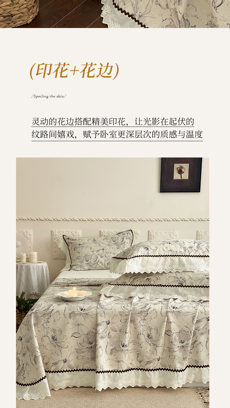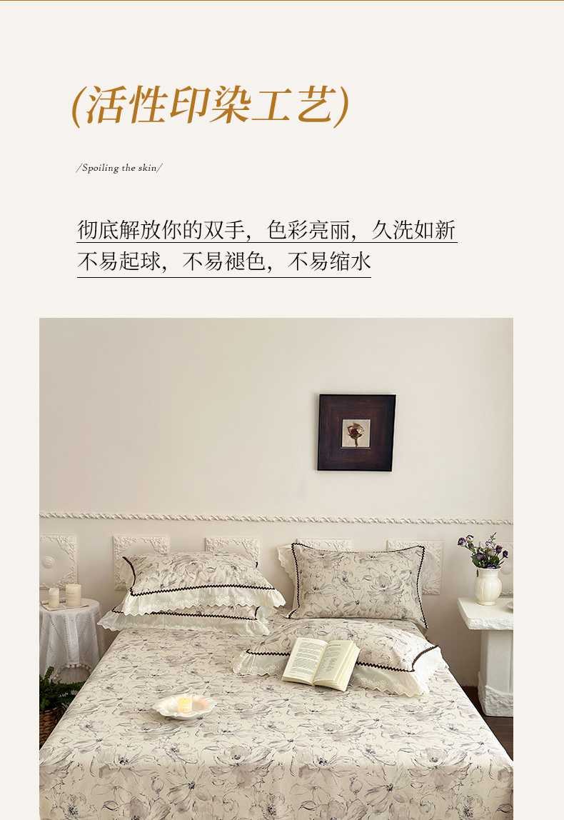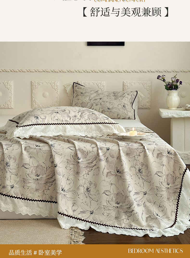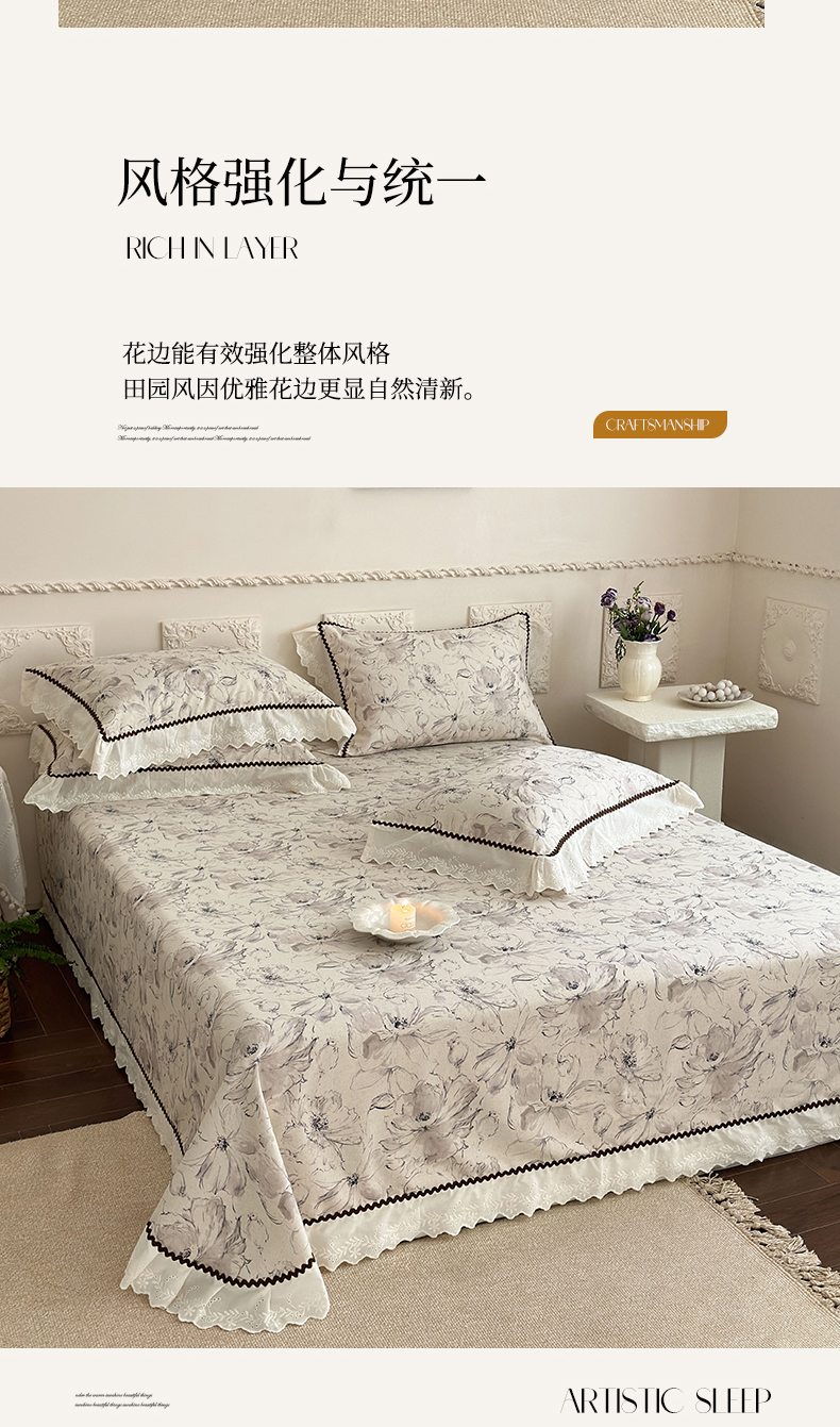 (总)乐朵家居 2026春夏 秘密花园 全棉水洗棉床单款VS夹棉床盖四件套 (控价单288夹棉388),蓝,卡其,白,玉