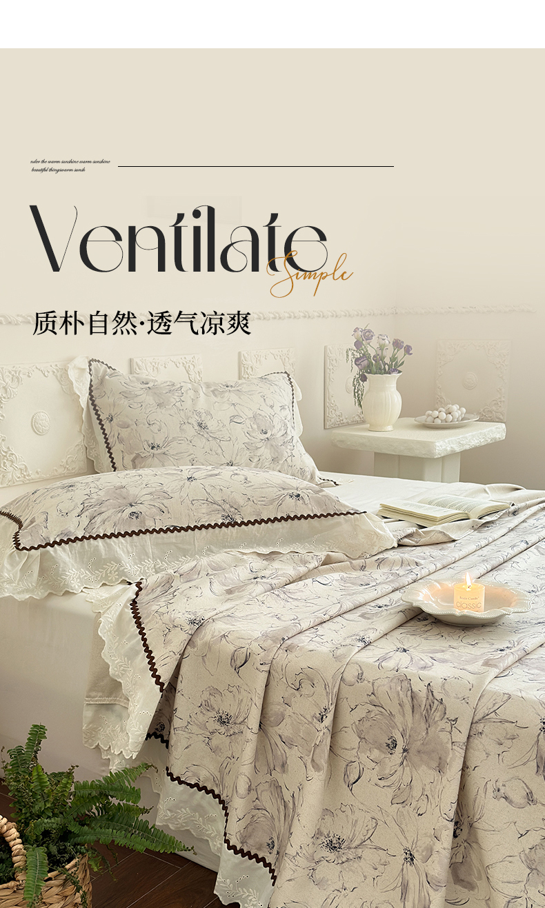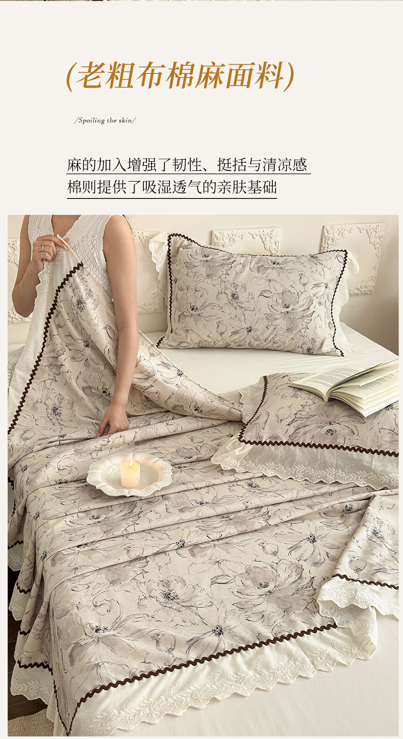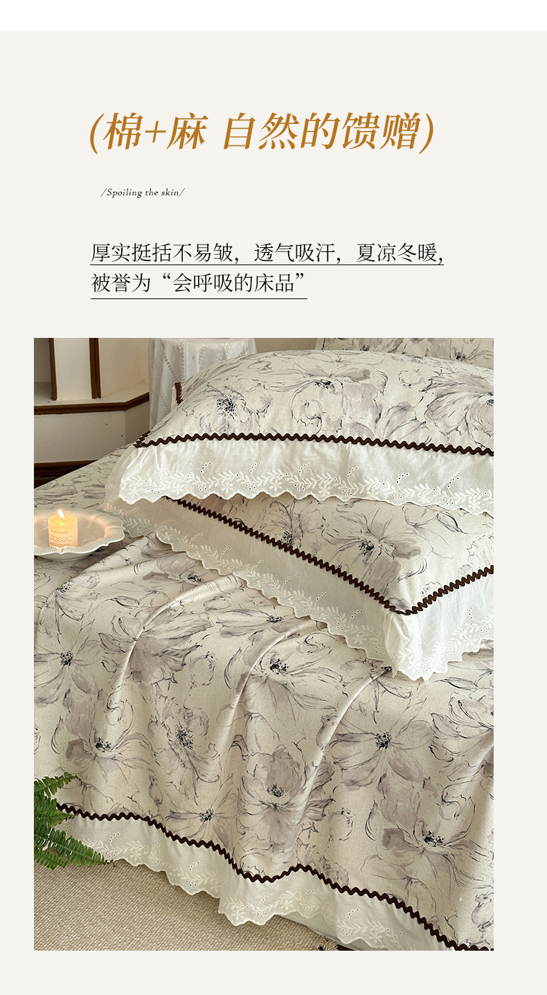 (总)乐朵家居 2026春夏 南木 全棉棉麻床单款夹棉床盖款 四件套,本色,奶咖