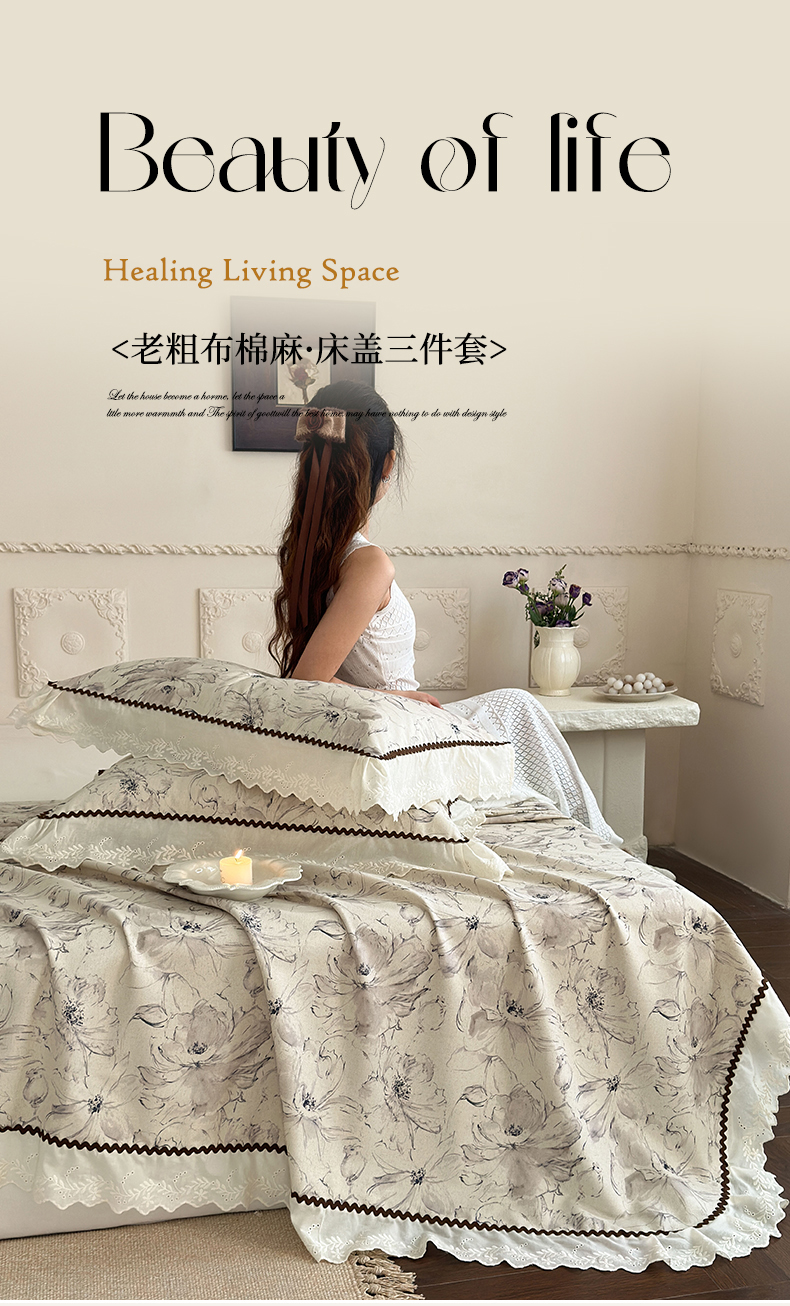 乐朵家居 2026新款棉麻老粗布三件套 风墨