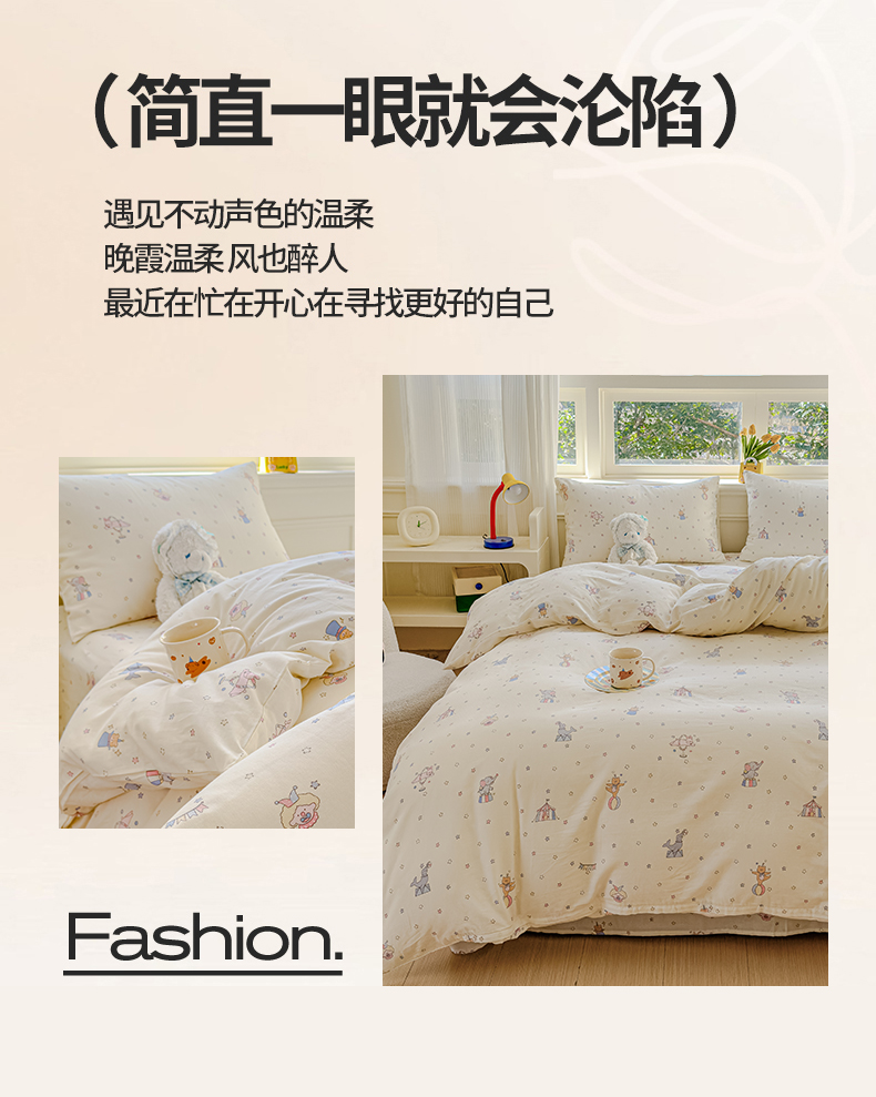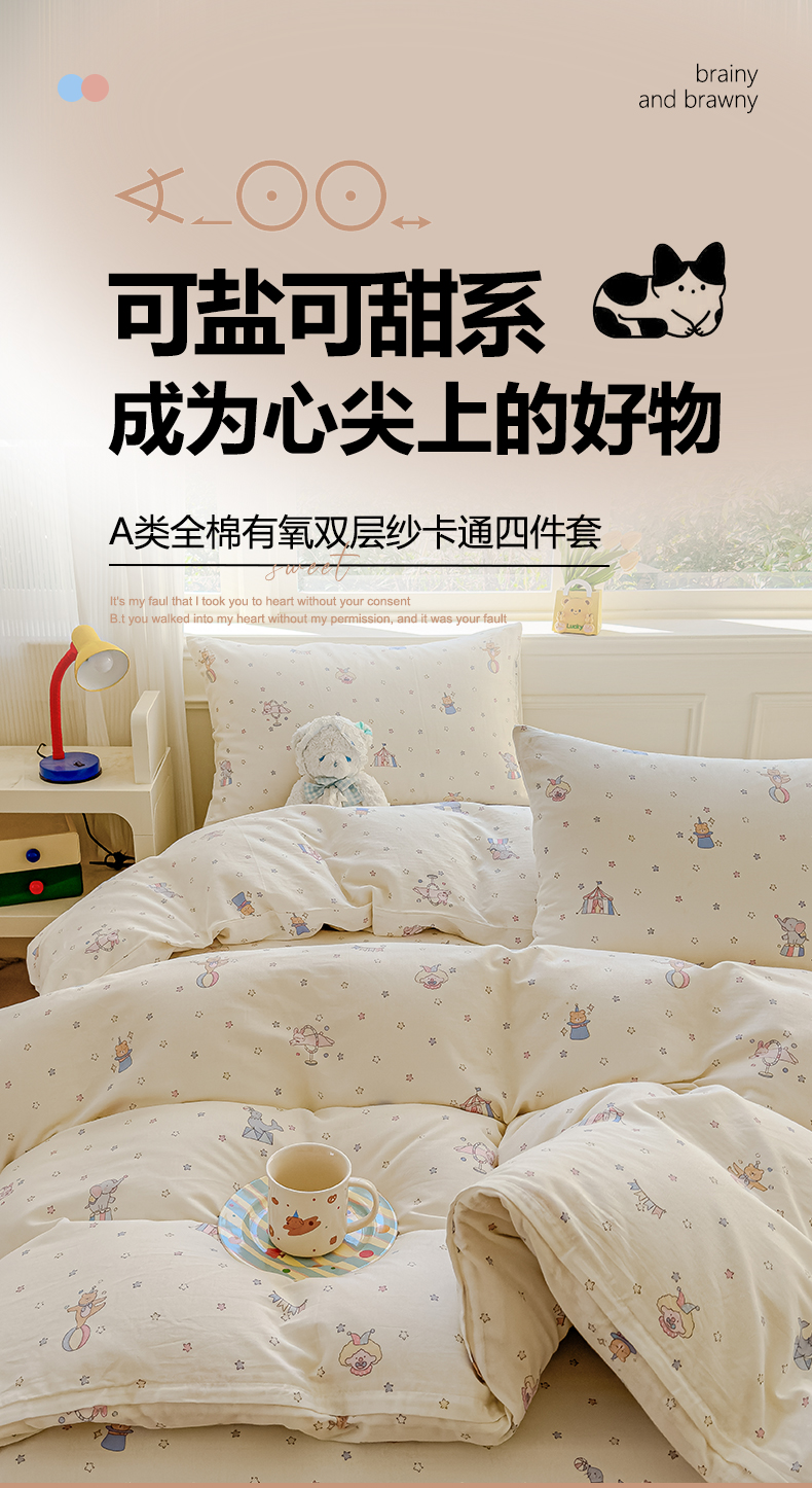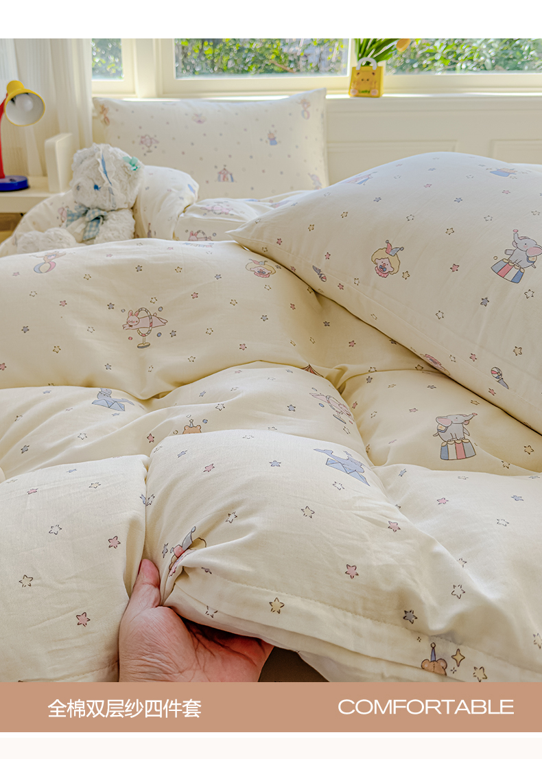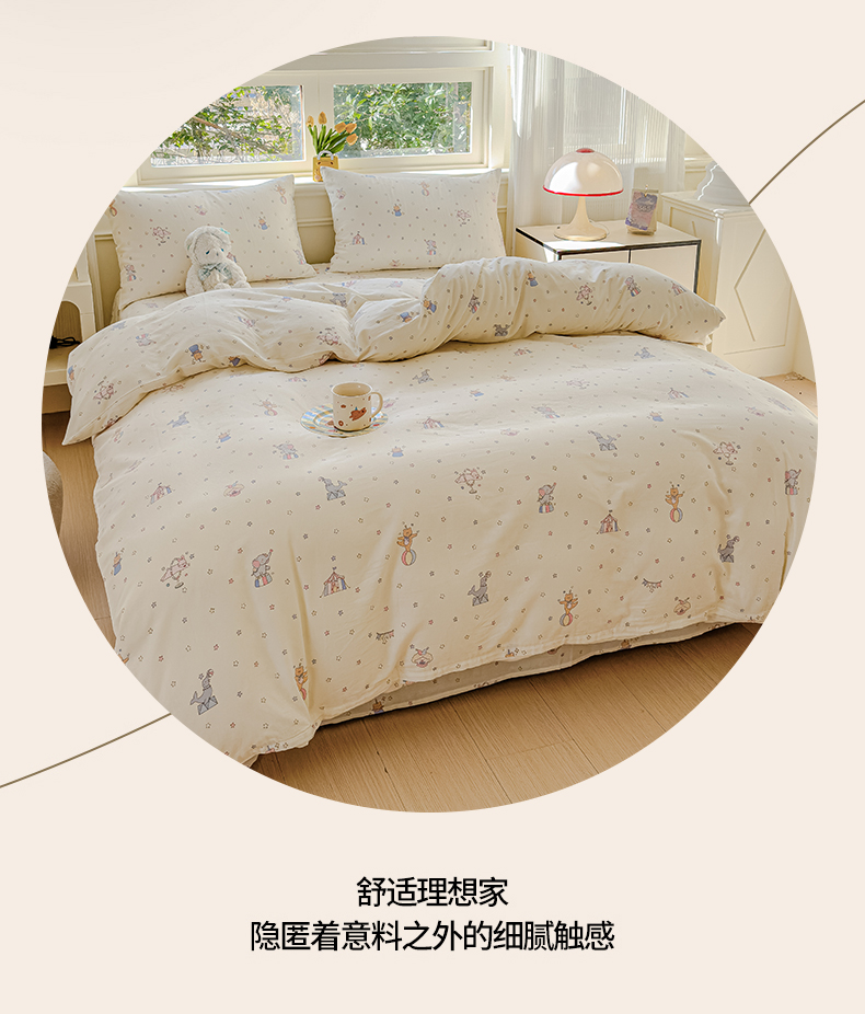 当前位置: 91家纺网 > 商品网购 > 床品套件 > 四件套 > 双层纱四件套 > 感遇家纺 2026春夏新款双层纱全棉纯棉系列四件套-第一批 马戏团