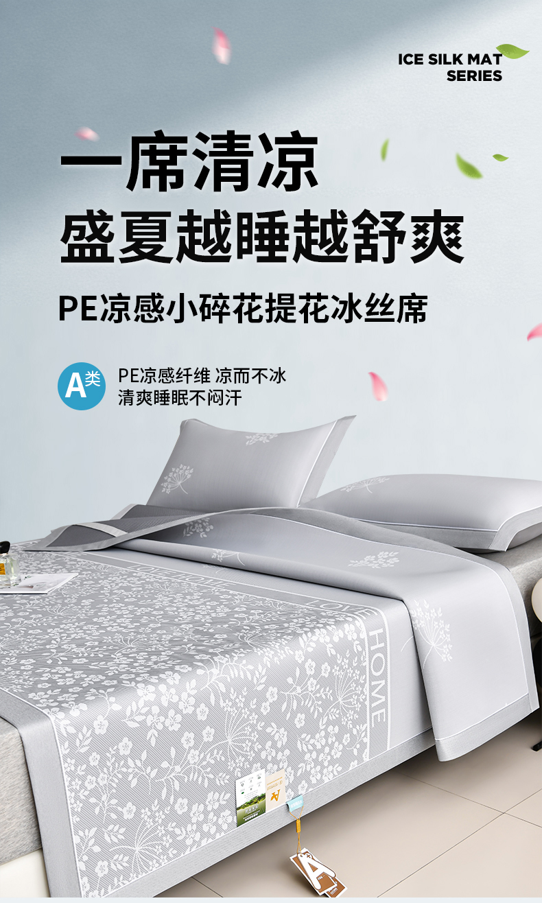 (总)小牛席业 2026春夏新款【实拍风格】PE凉感小碎花提花冰丝席,灰色,粉色,蓝色,抹茶,香槟