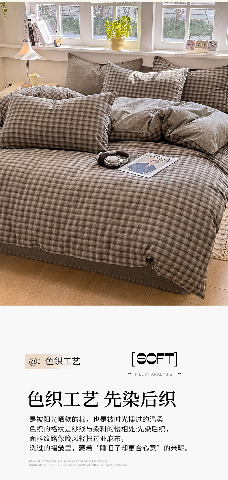 商品名称:梦依依 2026新款全棉色织水洗棉拉链款单品被套 云岫兰咖