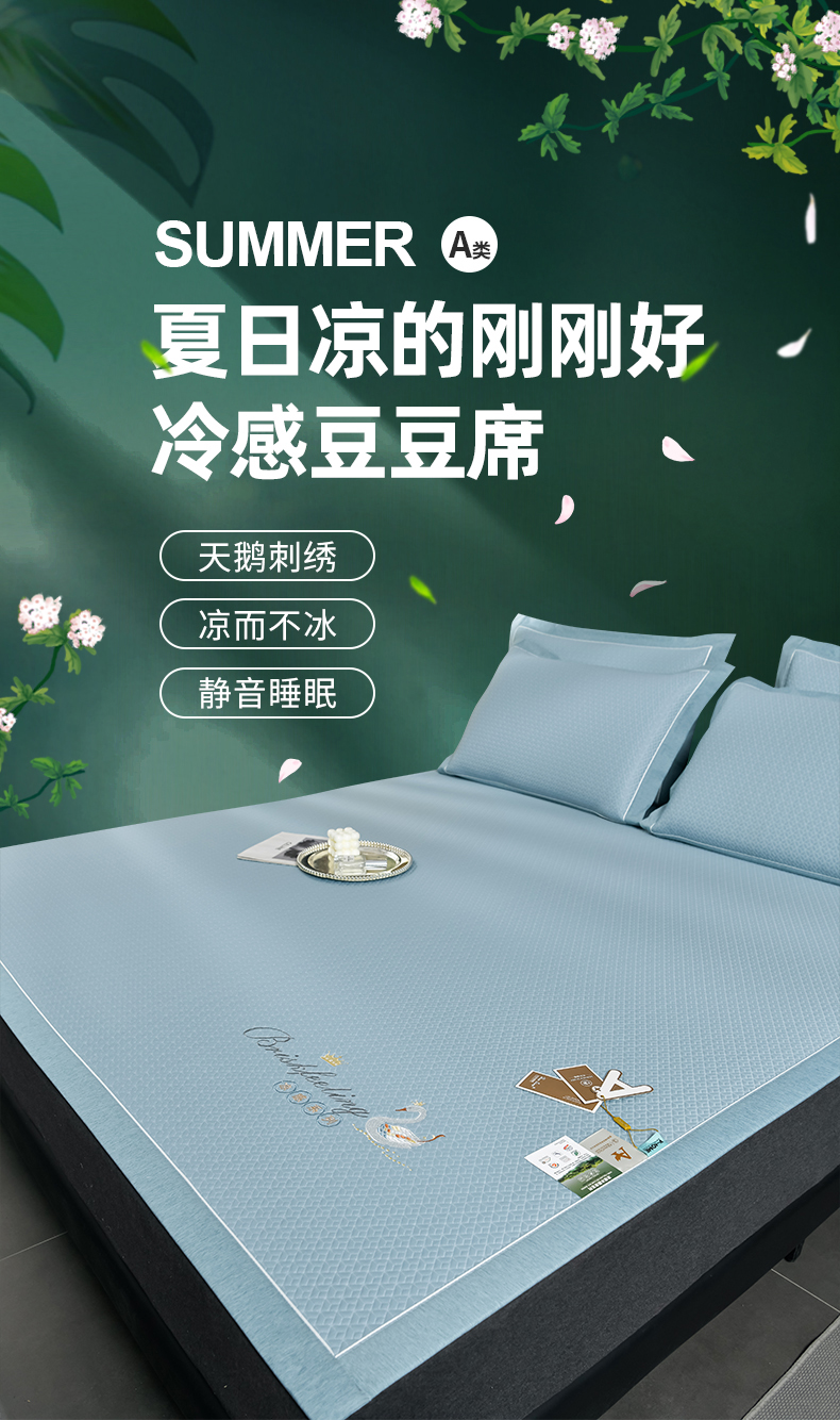 当前位置: 91家纺网 > 商品网购 > 床上用品 > 凉席 > 冰丝席 > 小牛席业 2026春夏新款天鹅刺绣冷感豆豆席凉席席子系列 天鹅刺绣冷感豆豆席(蓝色)