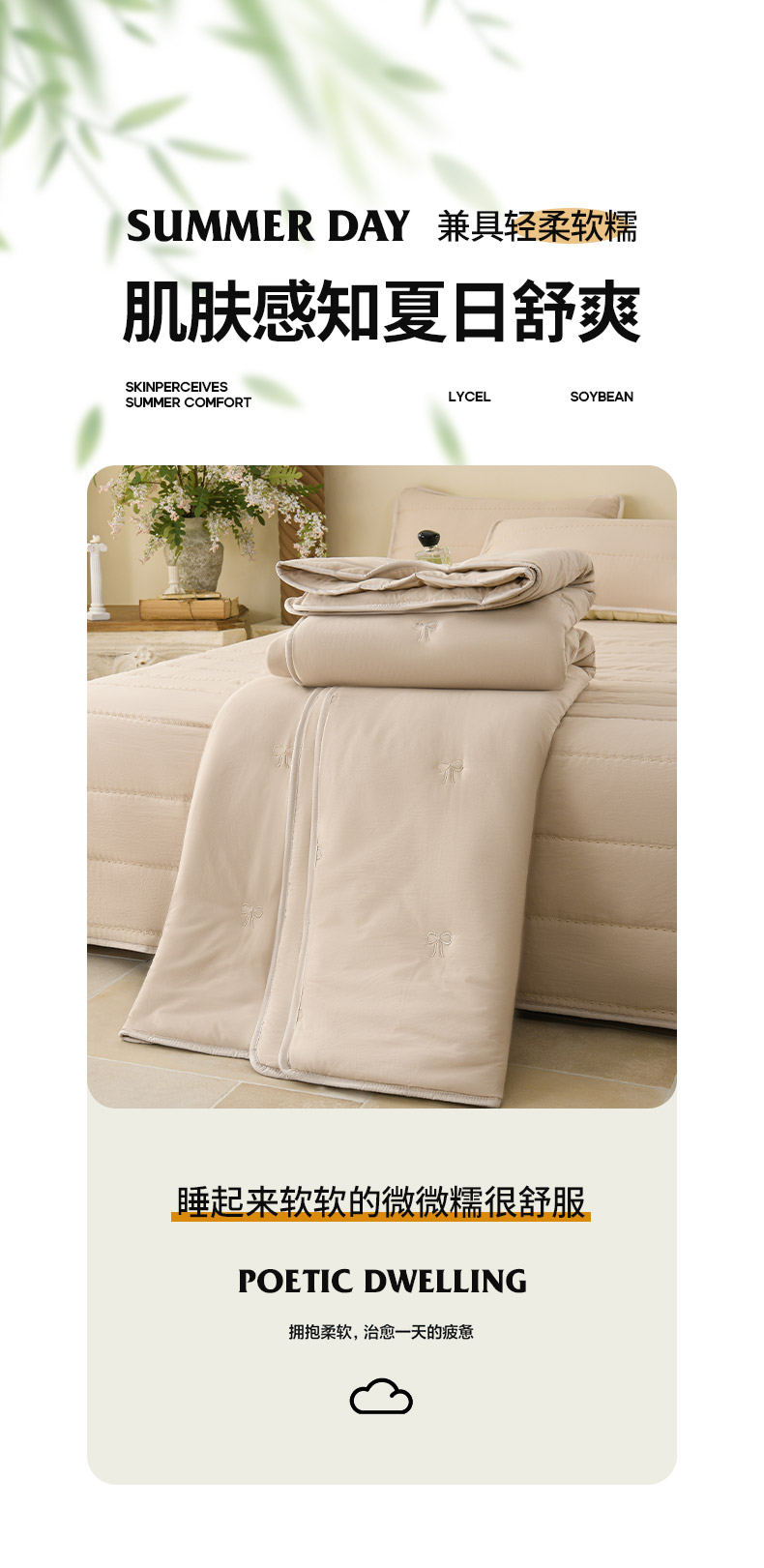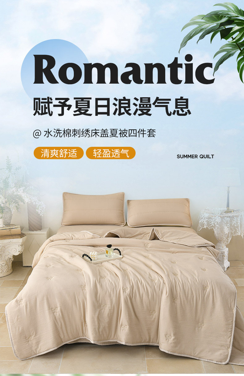 当前位置: 91家纺网 > 商品网购 > 床品套件 > 四件套 > 夏被四件套 > 推推家纺 2026新款水洗棉床盖夏被四件套 蝴蝶结-卡其