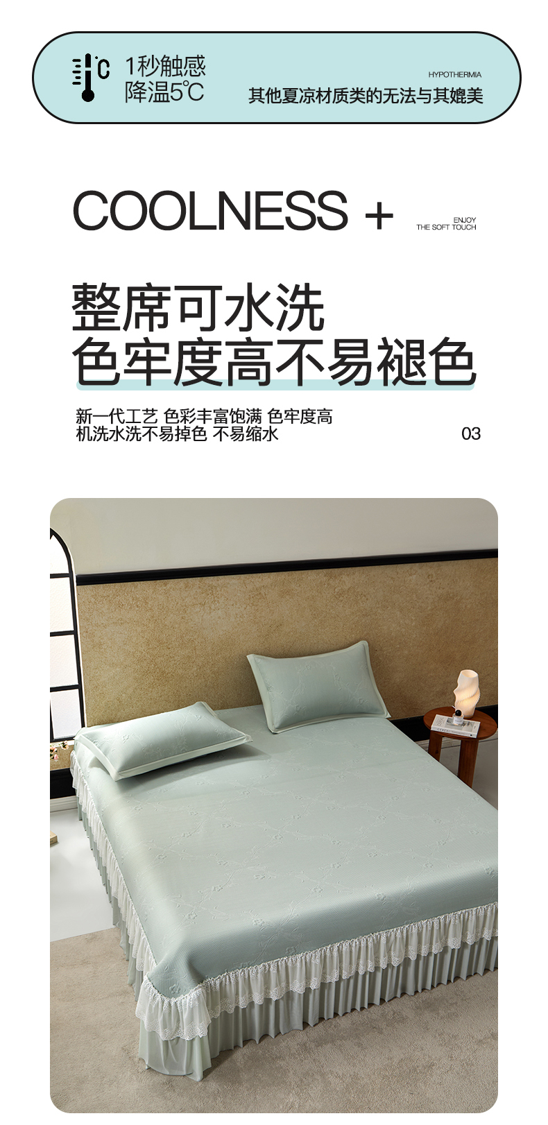 商品名称:瑞禾家纺 2026新款A类凉感豆豆床裙款凉席三件套-系列七 烟灰织浪