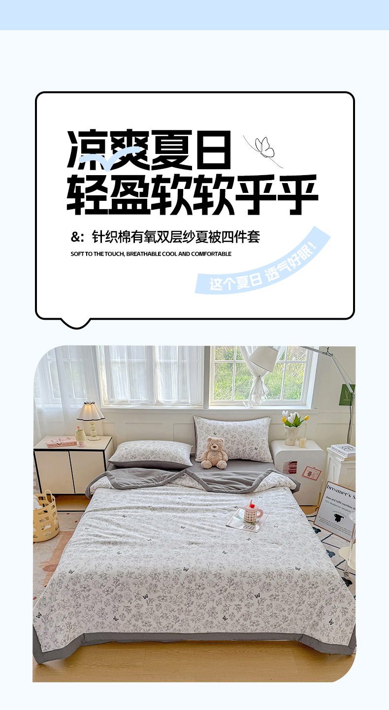 • 91家纺网 家纺一手货源 找家纺 优卡迪家纺馆 2026春夏新款针织棉双层纱夏被夏凉被空调被四件套【下载文件夹包含买家秀】 灵动