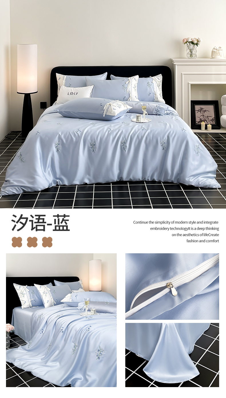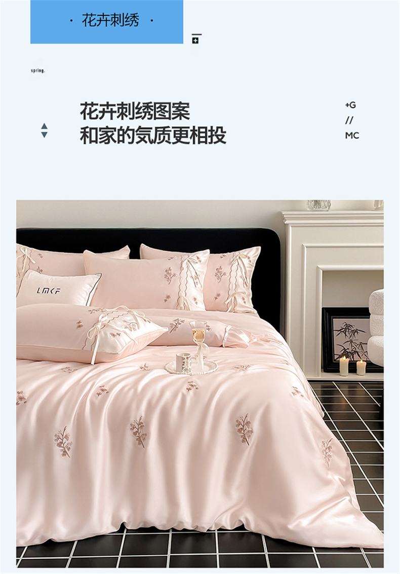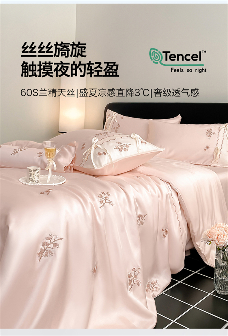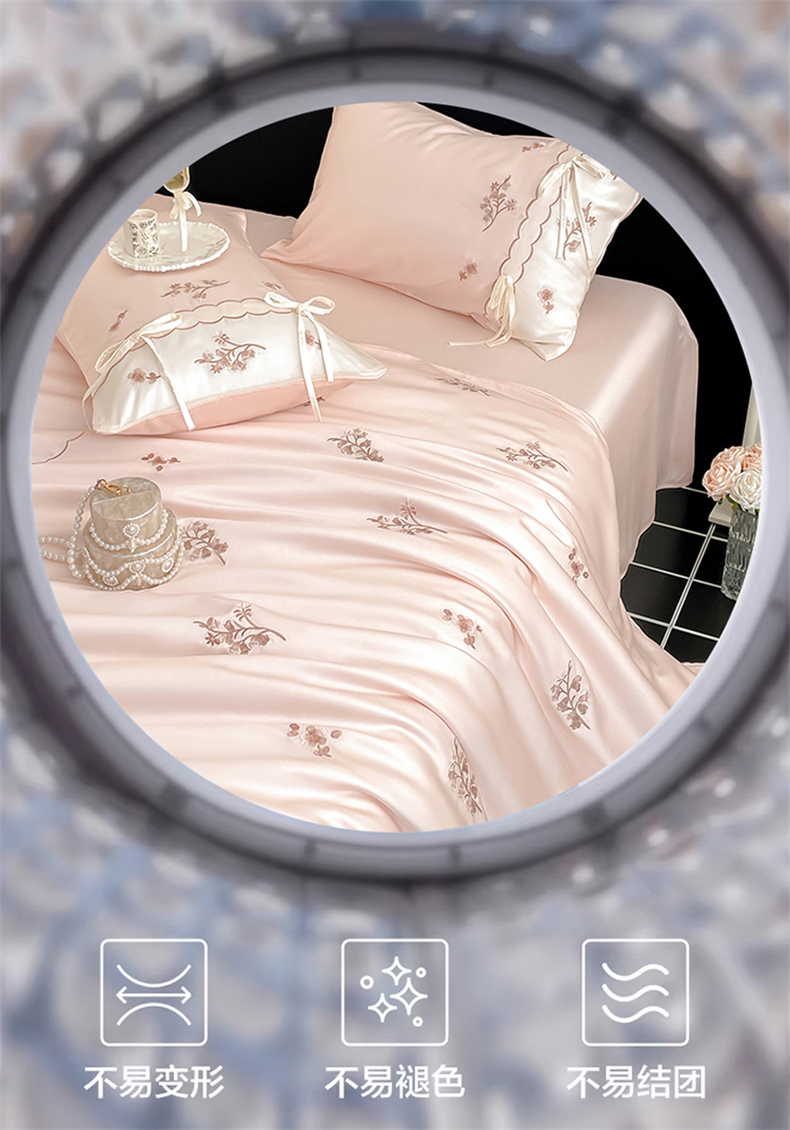 当前位置: 91家纺网 > 商品网购 > 床品套件 > 四件套 > 莱赛尔四件套 > 蓝米卡夫 2026夏季新款60S兰精天丝刺绣四件套-汐语(礼盒) 汐语-粉