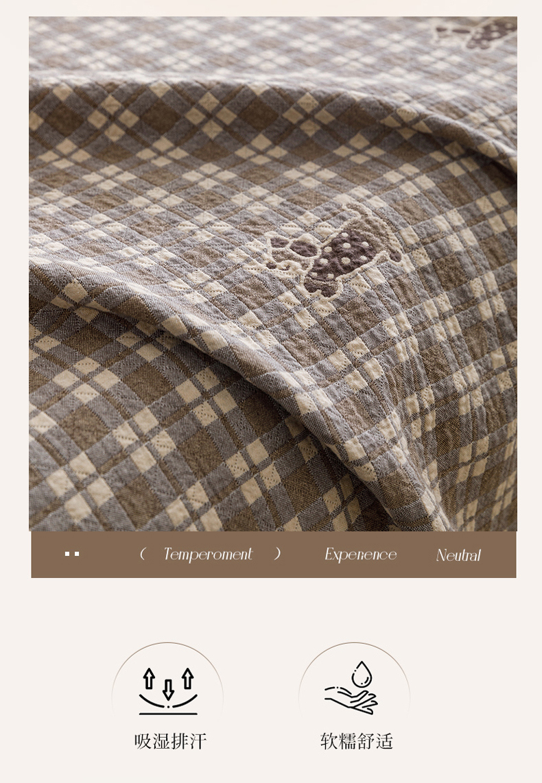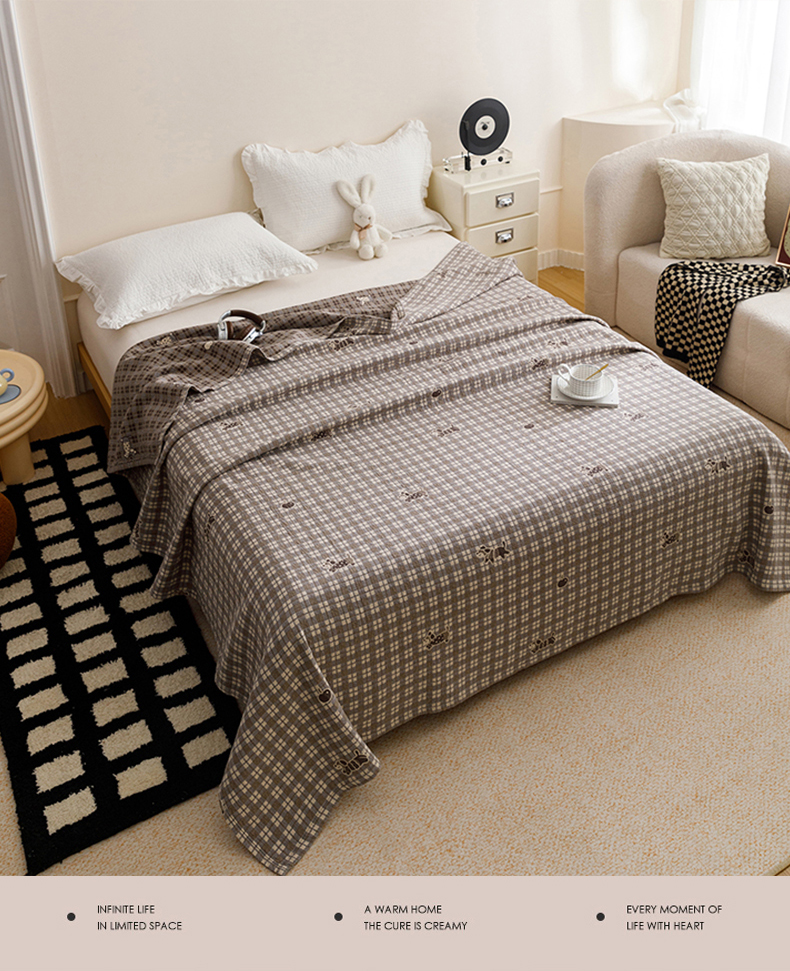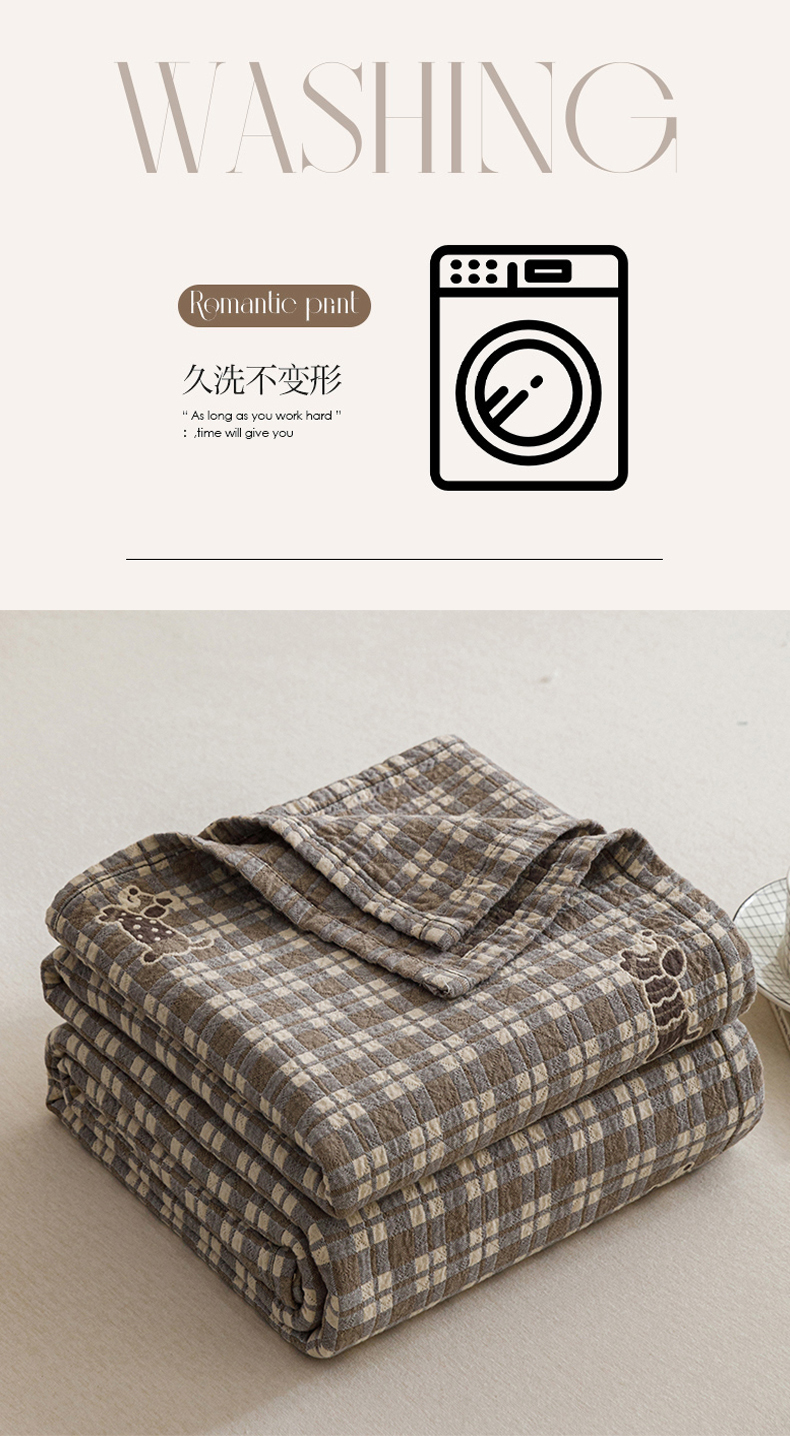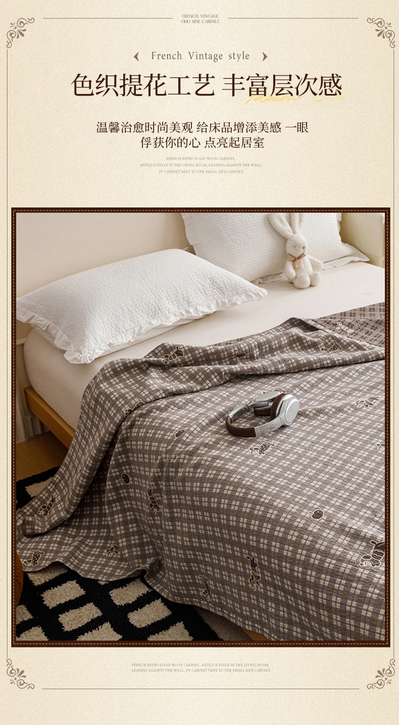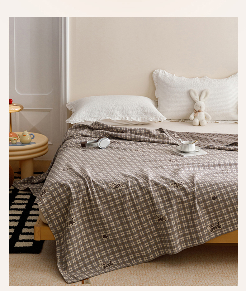 商品名称:悦然毛巾被 2026春夏新款水洗色织提花全棉纯棉纱布毛巾被盖毯休闲夏被毛毯 深格小狗