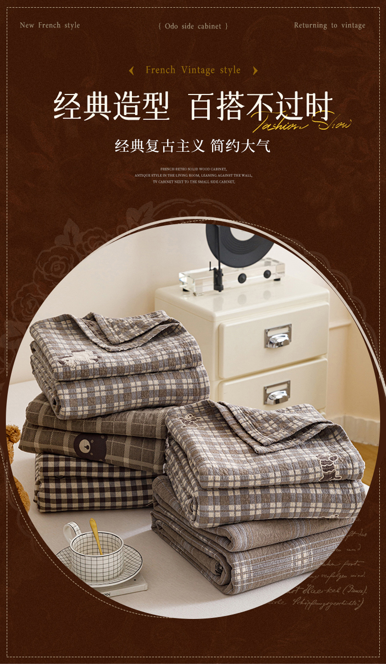 (总)悦然毛巾被 2026新款全棉外贸条纹格子纱布盖毯,初语灰,初语蓝,初语棕,极简灰,极简蓝,极简棕,组合图(仅供展示不可下单)