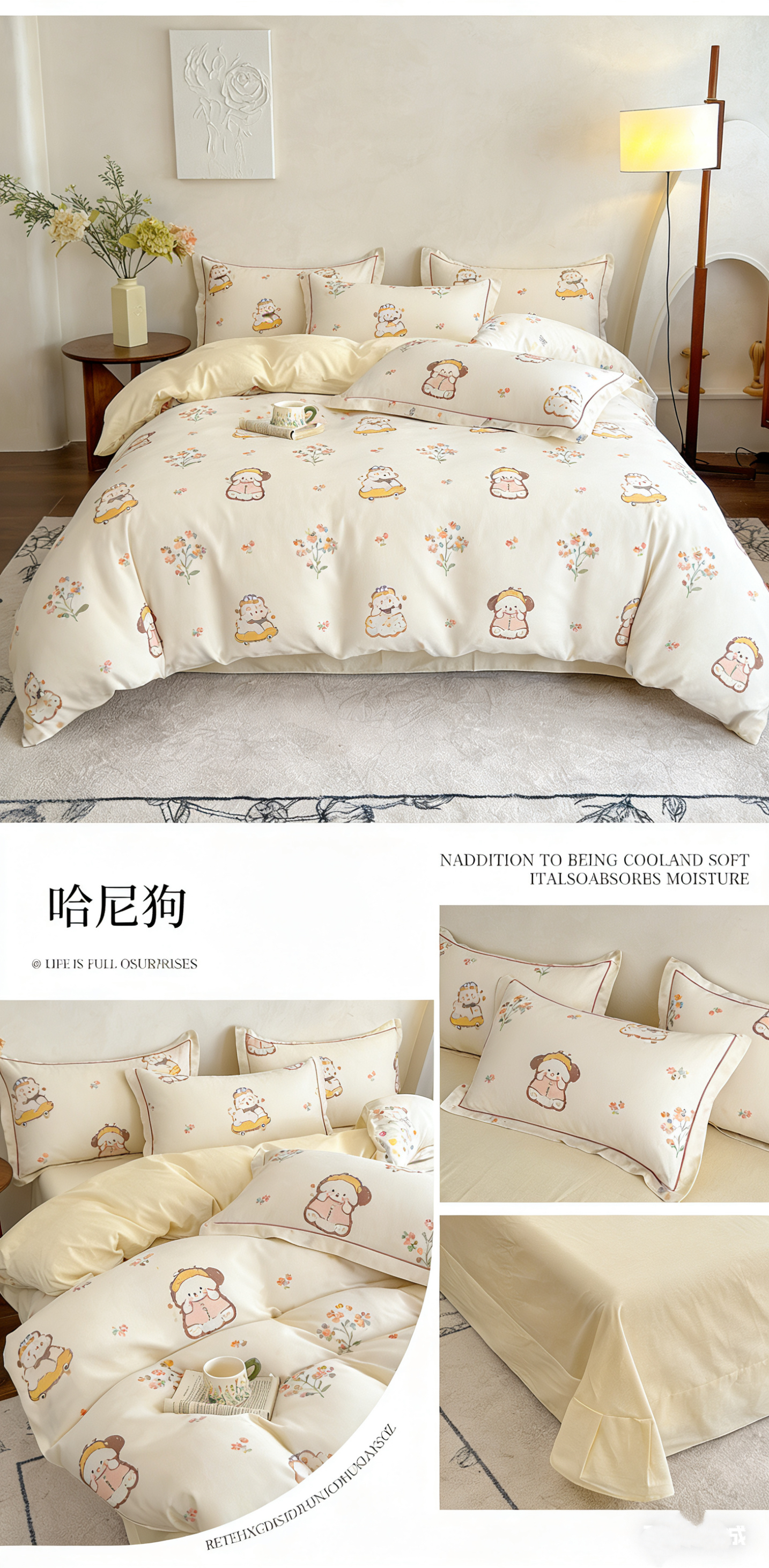 (总) U品汇 2026新款复古全棉纯棉亚麻棉麻数码印花四件套夏季冰凉爽透气套件(含30%亚麻),春日气息,狗狗汤米,花海世界,漫步沙滩,美漾记忆,萌宠宝贝,梦境-豆沙,梦境-绿,兔宝科米,夏威夷,向阳花