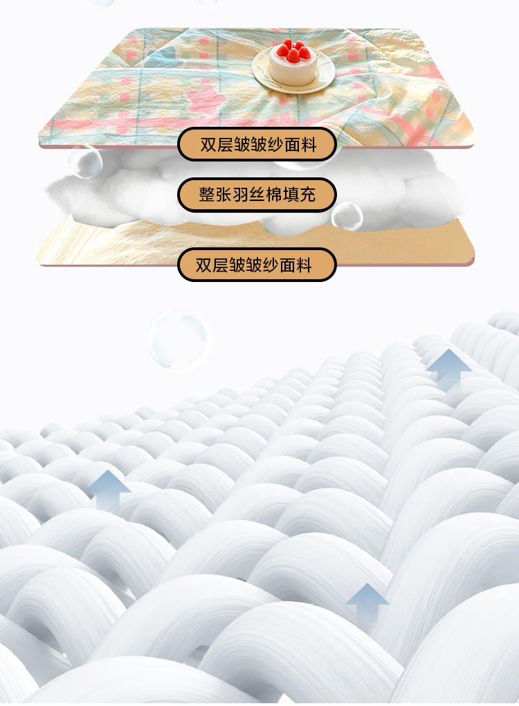 川悦生活 2026新款A类双层皱皱纱夏被空调被 夏被杏仁小星星
