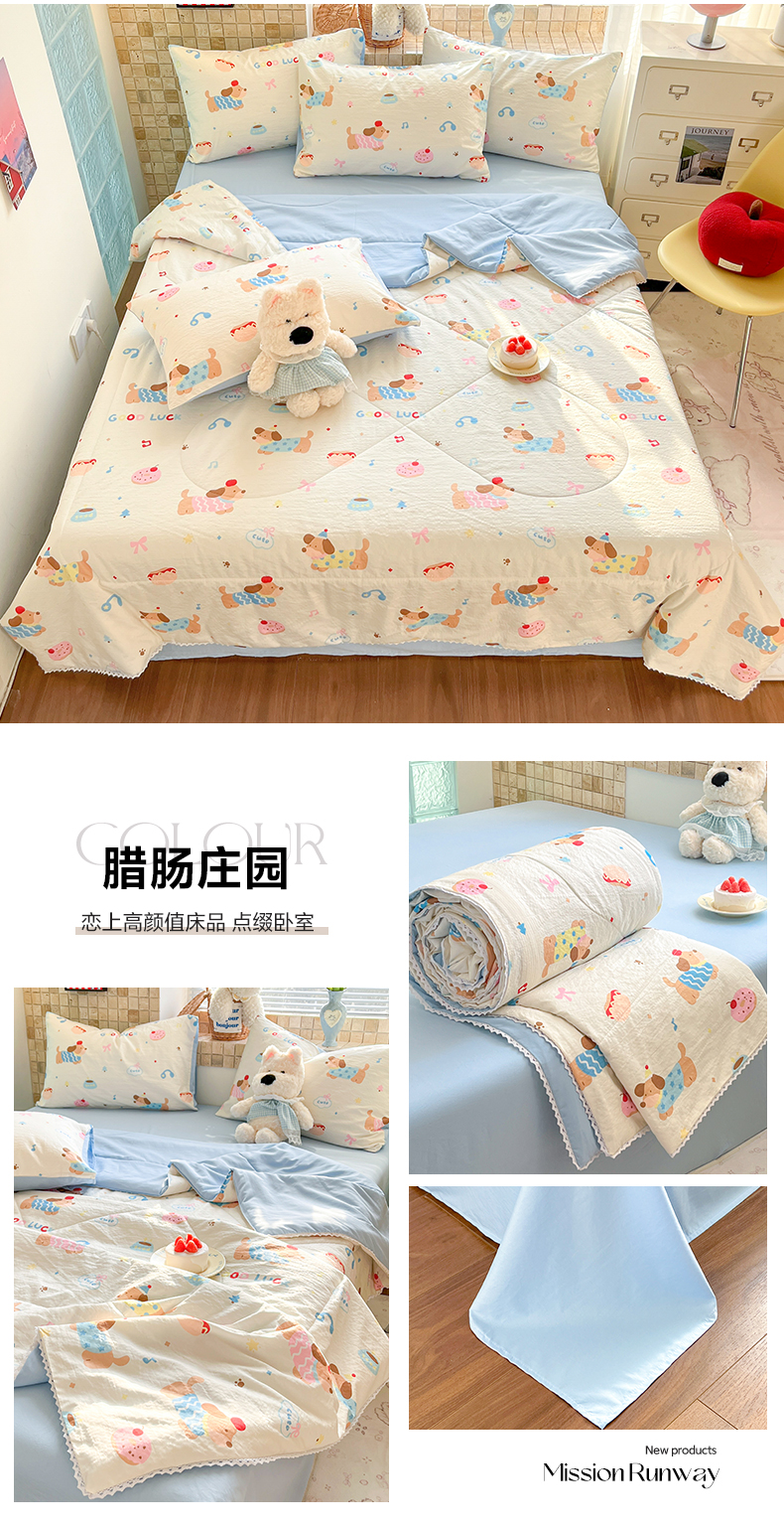 (总)川悦生活 2026新款双层纱木棉夏被四件套,星星西高地,嘟嘟花园,海盐小咪,花都小狗,花田乐园,花艺喵喵,可乐腊肠,腊肠甜心,腊肠庄园,奶油糕糕喵,奶油可盐,汽水小咪,恰星星,巧克力乐园,数星星,糖豆小旺,甜梦心愿,西斯花圃,香芋甜梦,小猫庄园,杏仁小星星,组合图