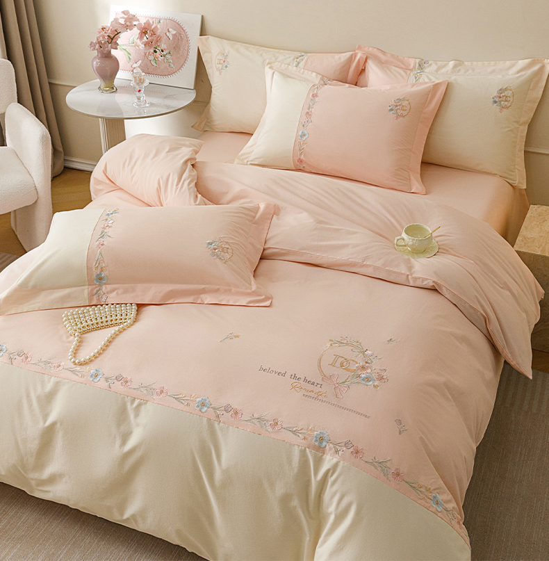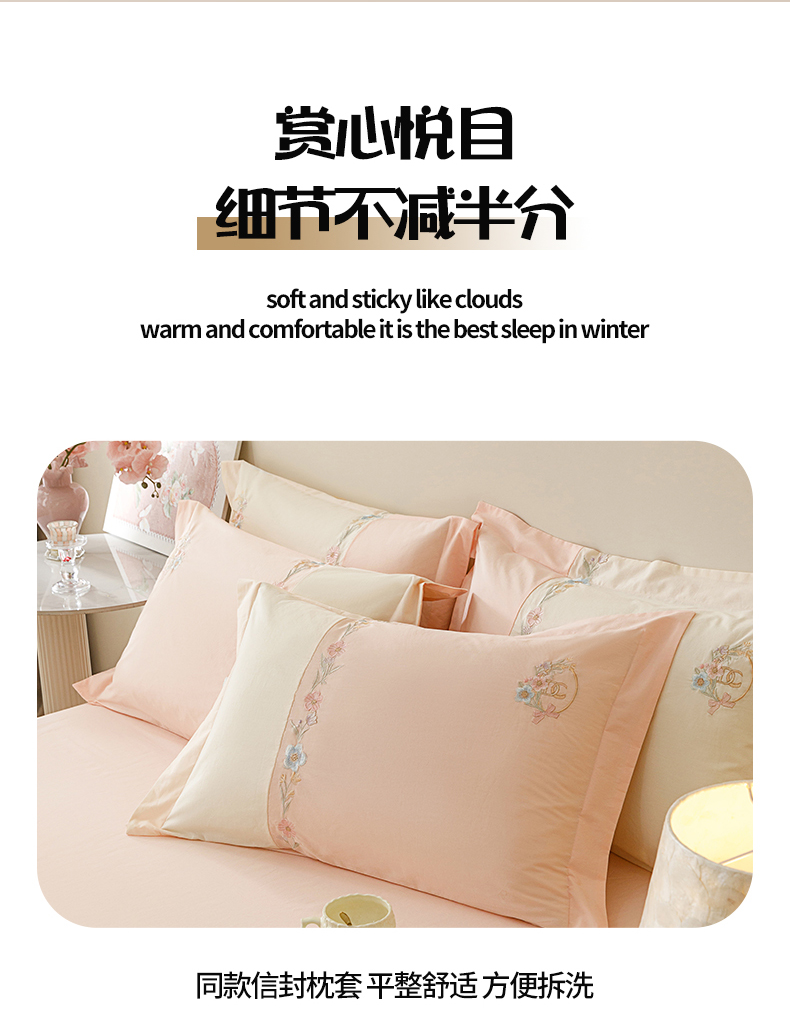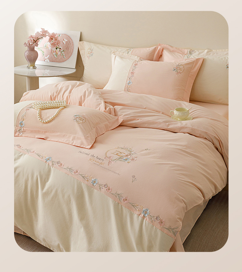 当前位置: 91家纺网 > 商品网购 > 床品套件 > 四件套 > 全棉普通四件套 > 艾莱家纺 2026春夏新款全棉纯棉水洗棉刺绣加厚四件套-希蕴 希蕴-淡紫粉