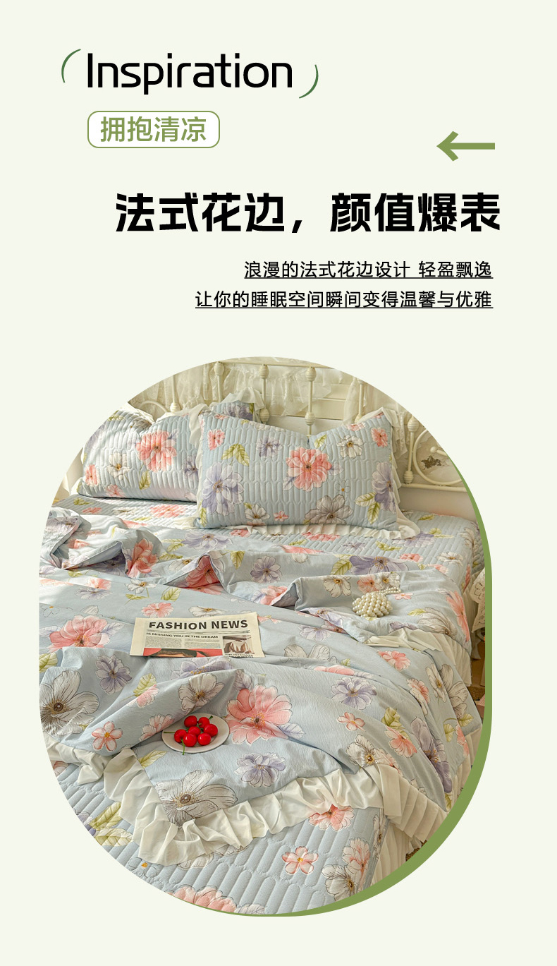 当前位置: 91家纺网 > 商品网购 > 床品套件 > 四件套 > 其它四件套 > 提花大世界 2026新款冰肤纱法式花边凉感夏被夏凉被空调被被套凉席三件套床盖夹棉四件套 蓝屿白玫