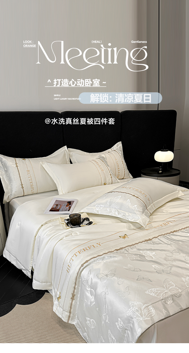商品名称:(总)宇航家纺 2026春夏新款水洗真丝绣花夏被四件套夏凉被空调被—浮生蝶梦